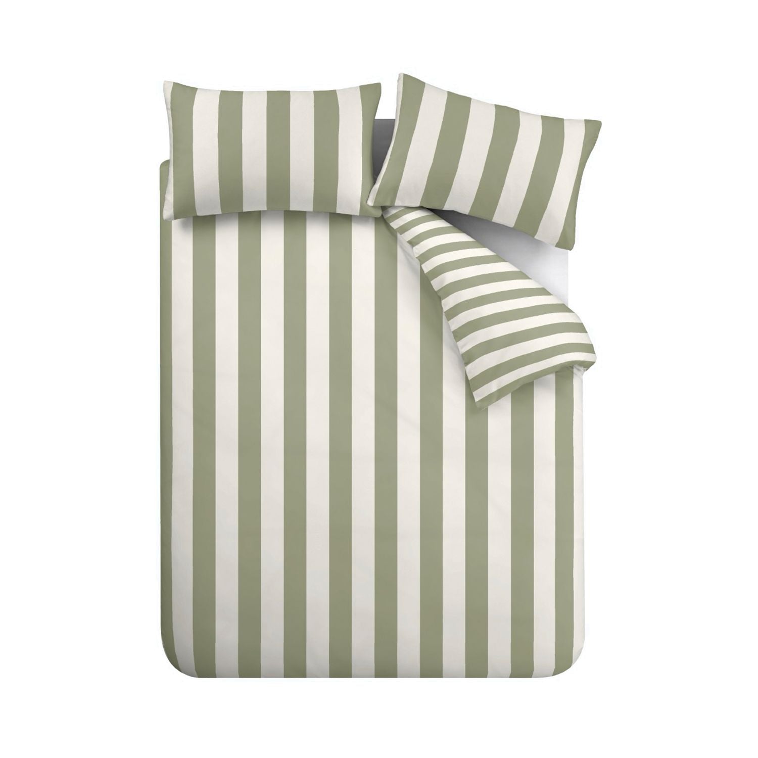 Catherine Lansfield Cove Stripe Green Reversible Duvet Set