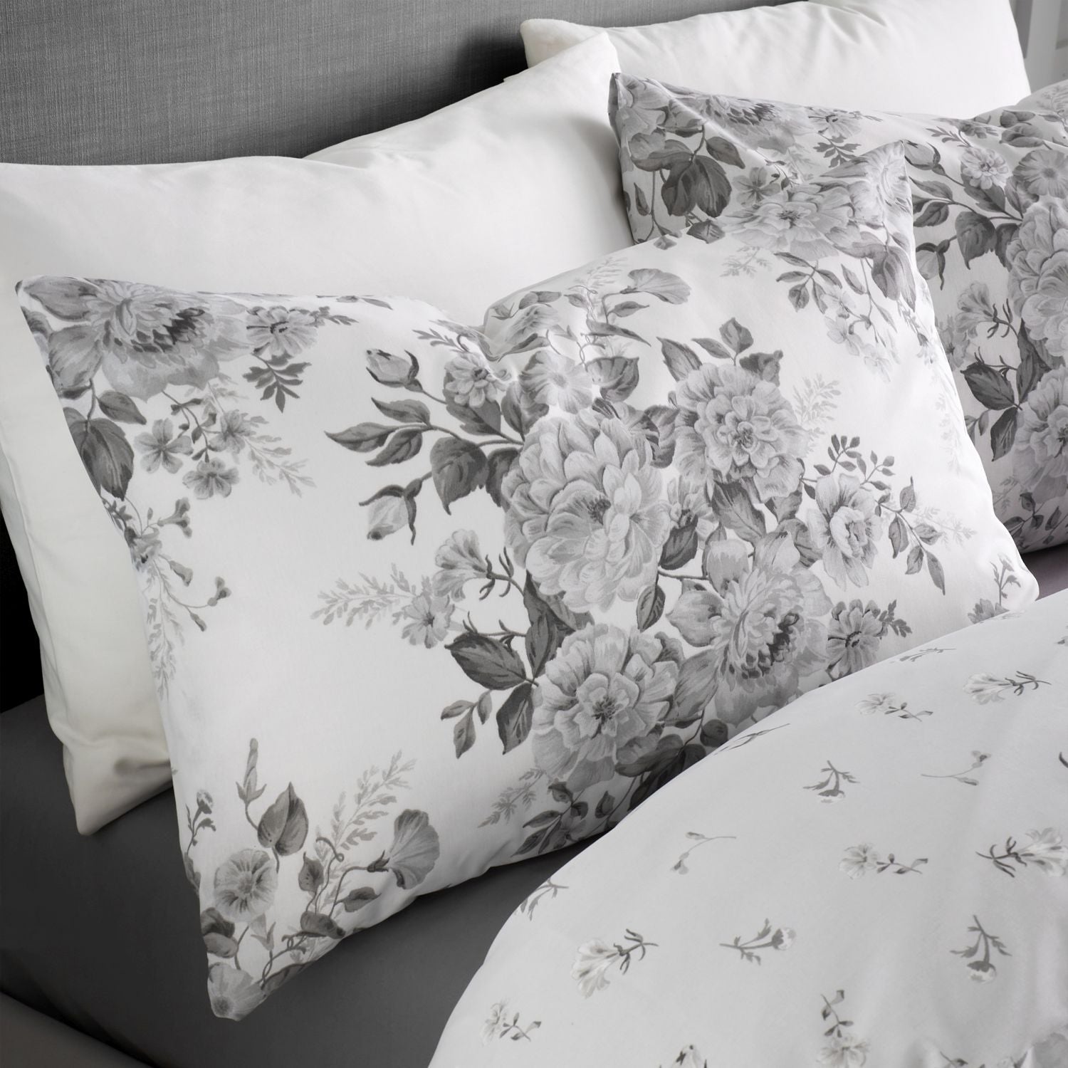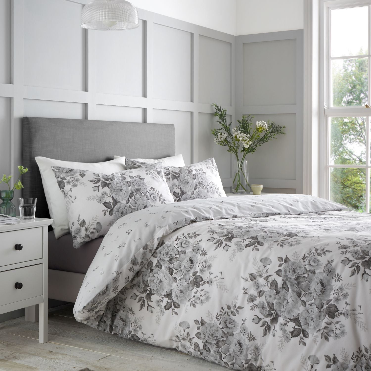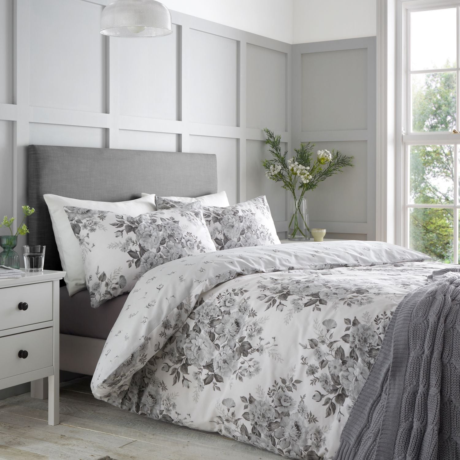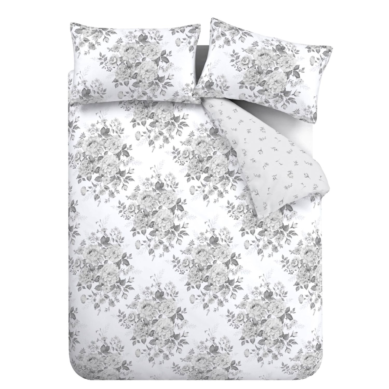 Catherine Lansfield Elinda Grey Floral Reversible Duvet Set