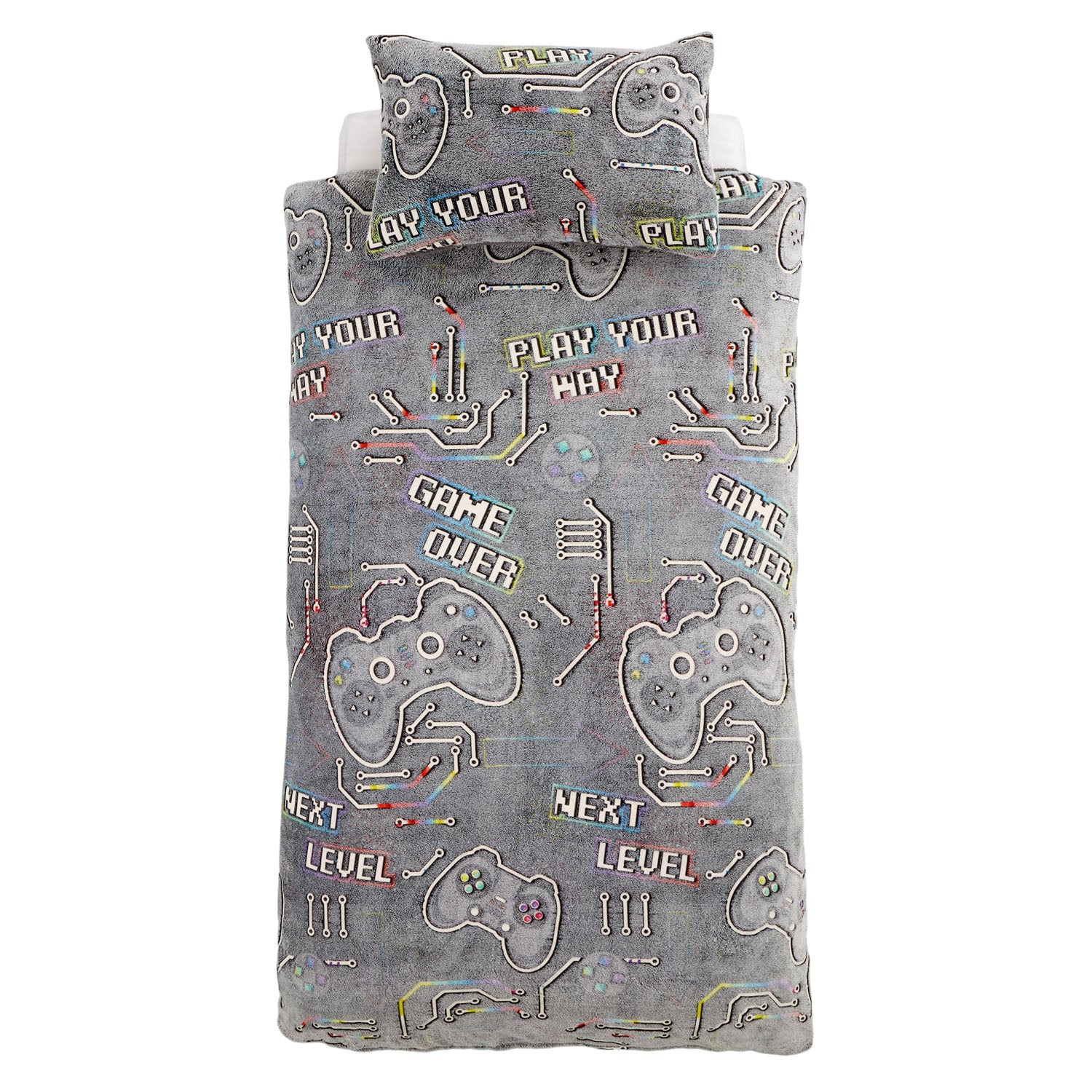 Catherine Lansfield Black Game Over Glow in the Dark Fleece Duvet Set