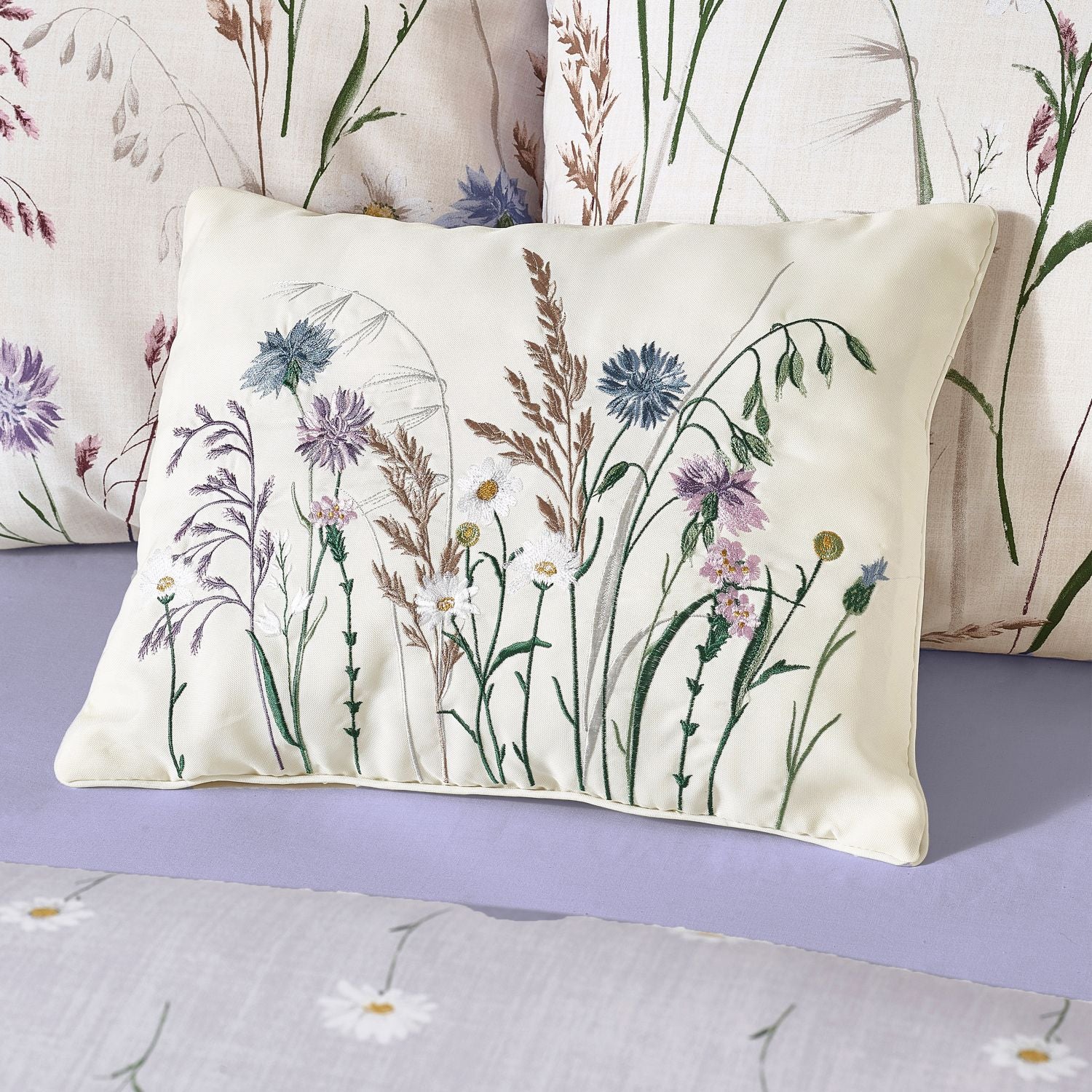 Bring a charming countryside feel to your space, with this delicate embroidered floral meadow design featuring wildflowers and grasses on a soft cream background. The intricate embroidery captures the beauty of flora swaying in the breeze, adding a touch of nature's elegance to your decor.