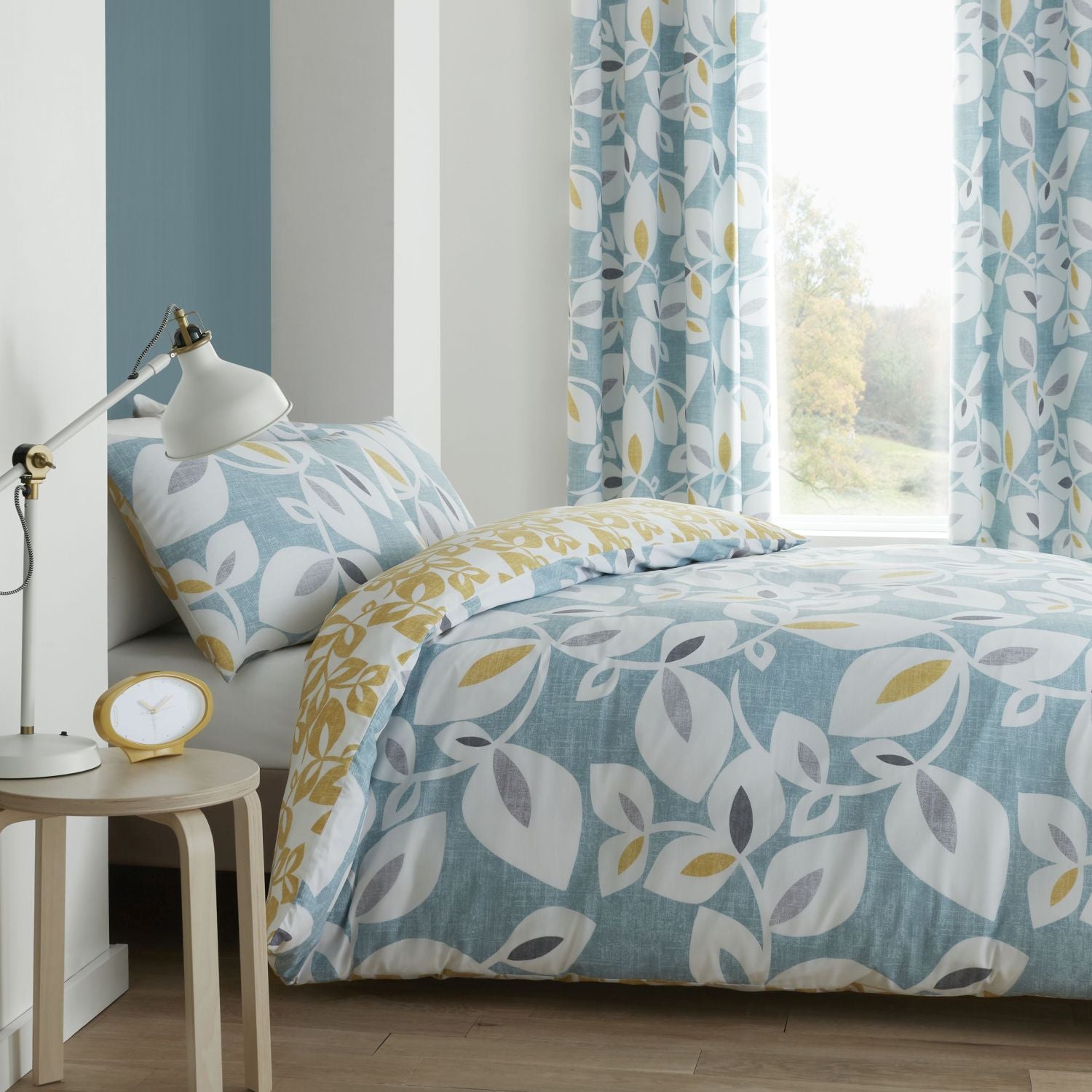 Catherine Lansfield Inga Leaf Teal Reversible Duvet Set