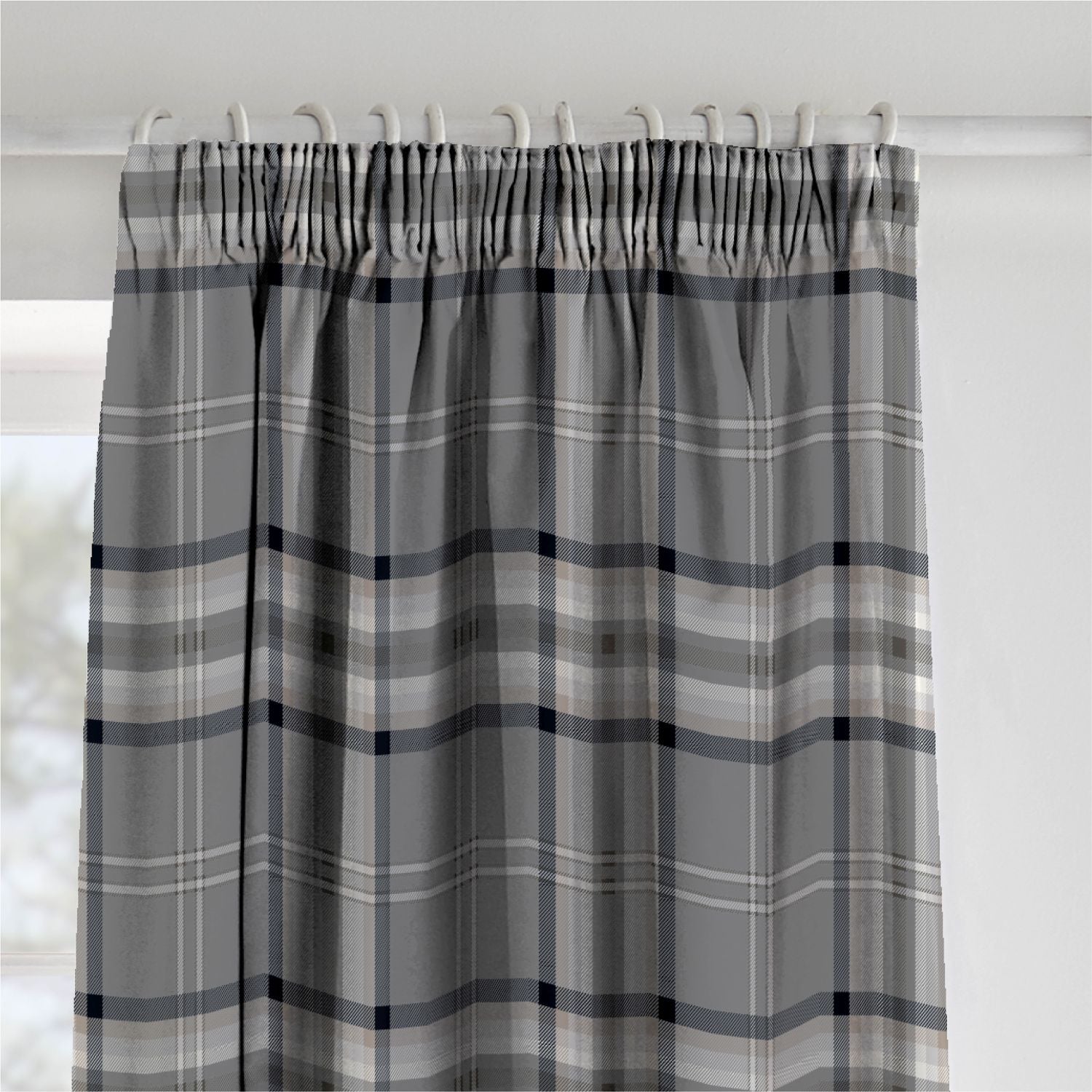 Catherine Lansfield Kelso Charcoal Check Lined Pencil Pleat Curtains