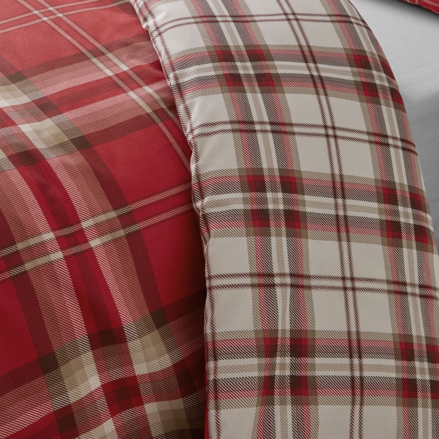 Add a country feel to your bedroom with this bold check which flaunts a stylish large tartan check design with a smaller scale reverse for an alternative look. Created from easy-care recycled polyester and soft cotton, blended for everyday use.