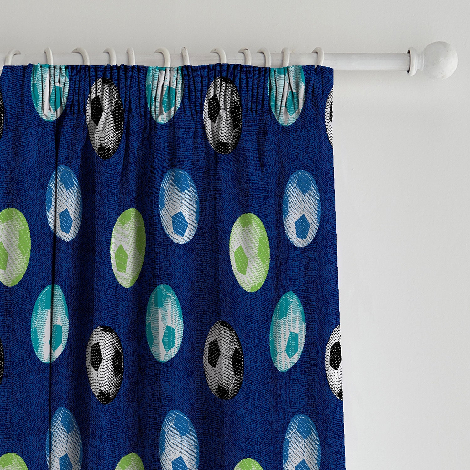 Catherine Lansfield Blue Football Lined Pencil Pleat Curtains