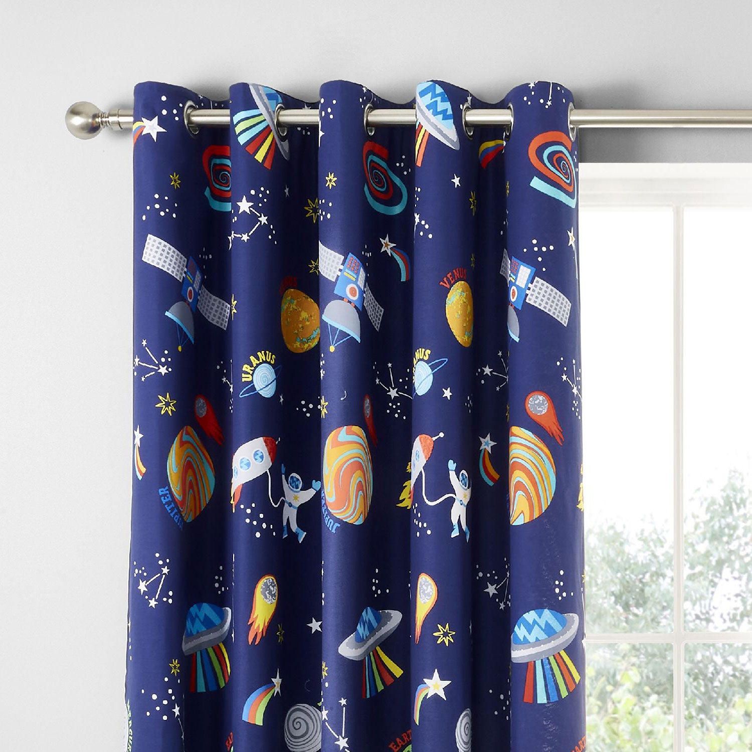 Catherine Lansfield Lost In Space Grey/Blue Reversible Eyelet Curtains