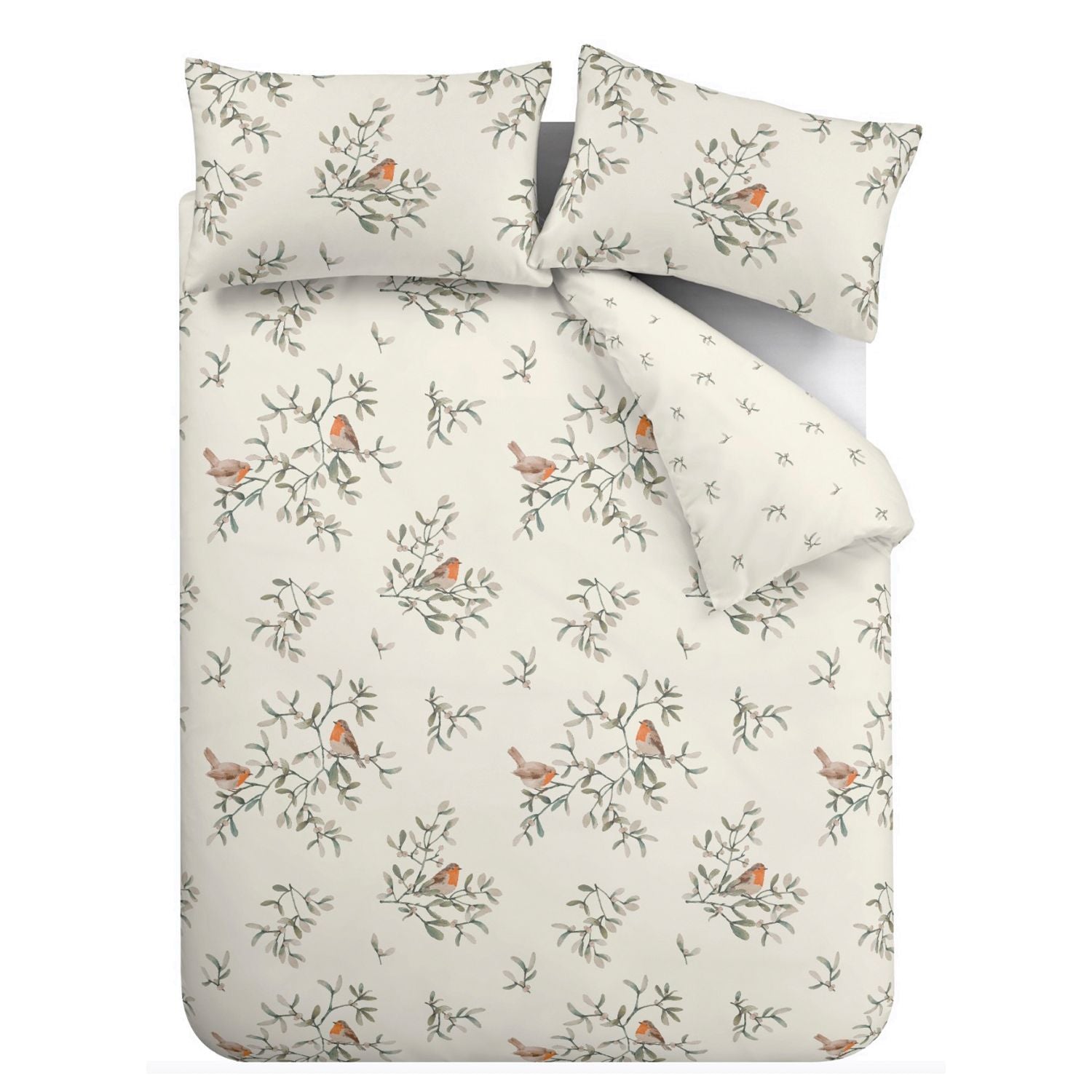 Catherine Lansfield Mistletoe Robins Brushed Cotton Duvet Set