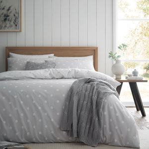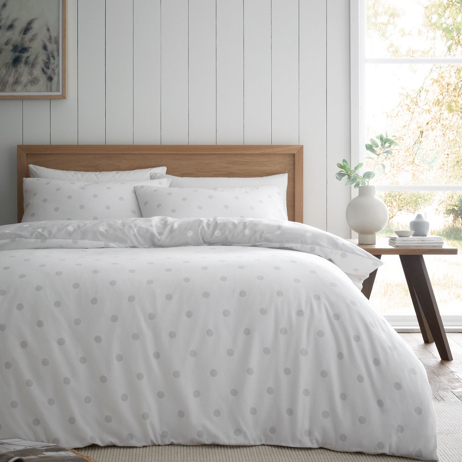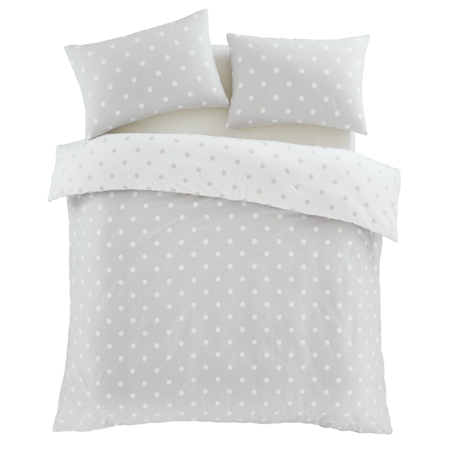 Catherine Lansfield Polka Dot Grey Brushed Cotton Reversible Duvet Set