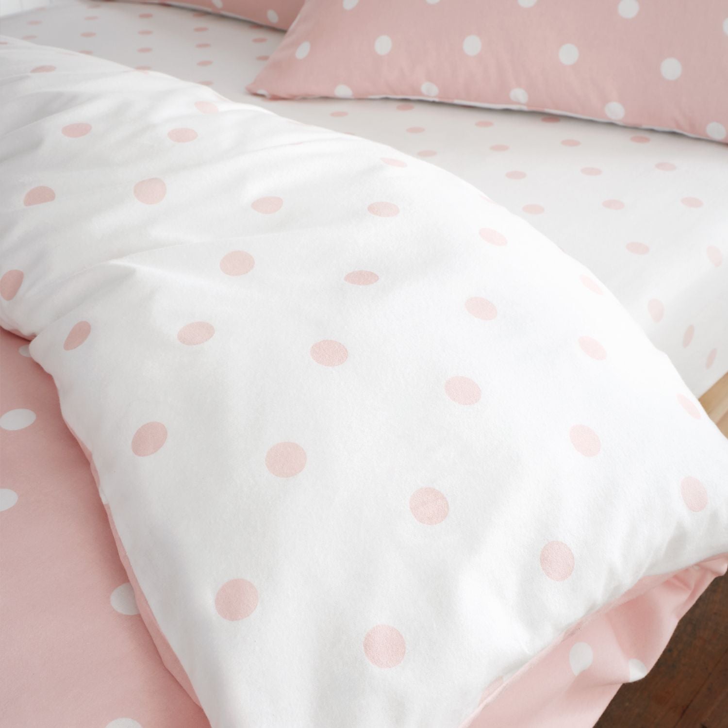 This charming design features playful polka dots that add a touch of serenity to your space. Created from a soft and cosy 100% brushed Cotton, this sheeting promises to keep you warm and comfortable throughout the night.