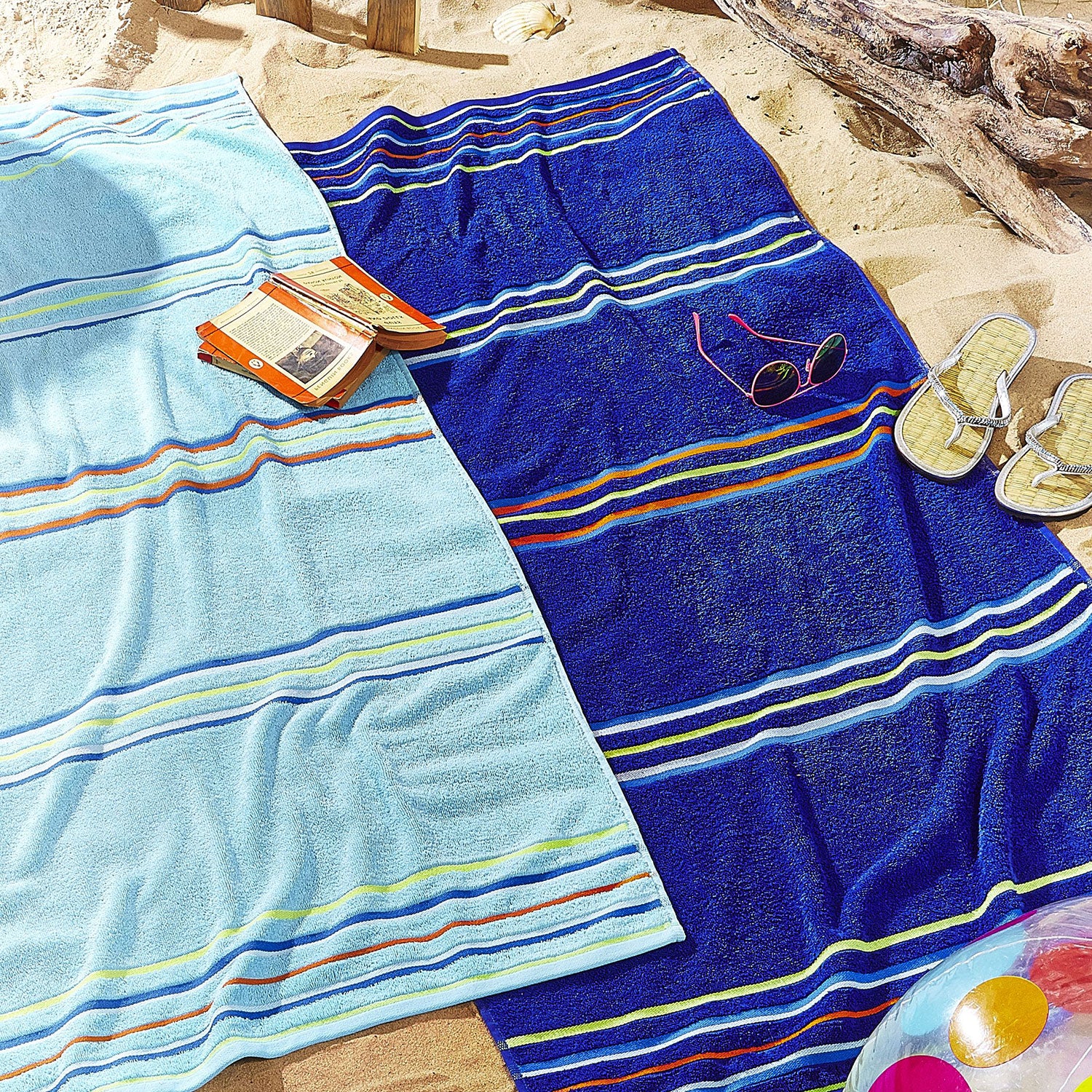Catherine Lansfield Rainbow Light / Dark Blue Beach Towel Pair