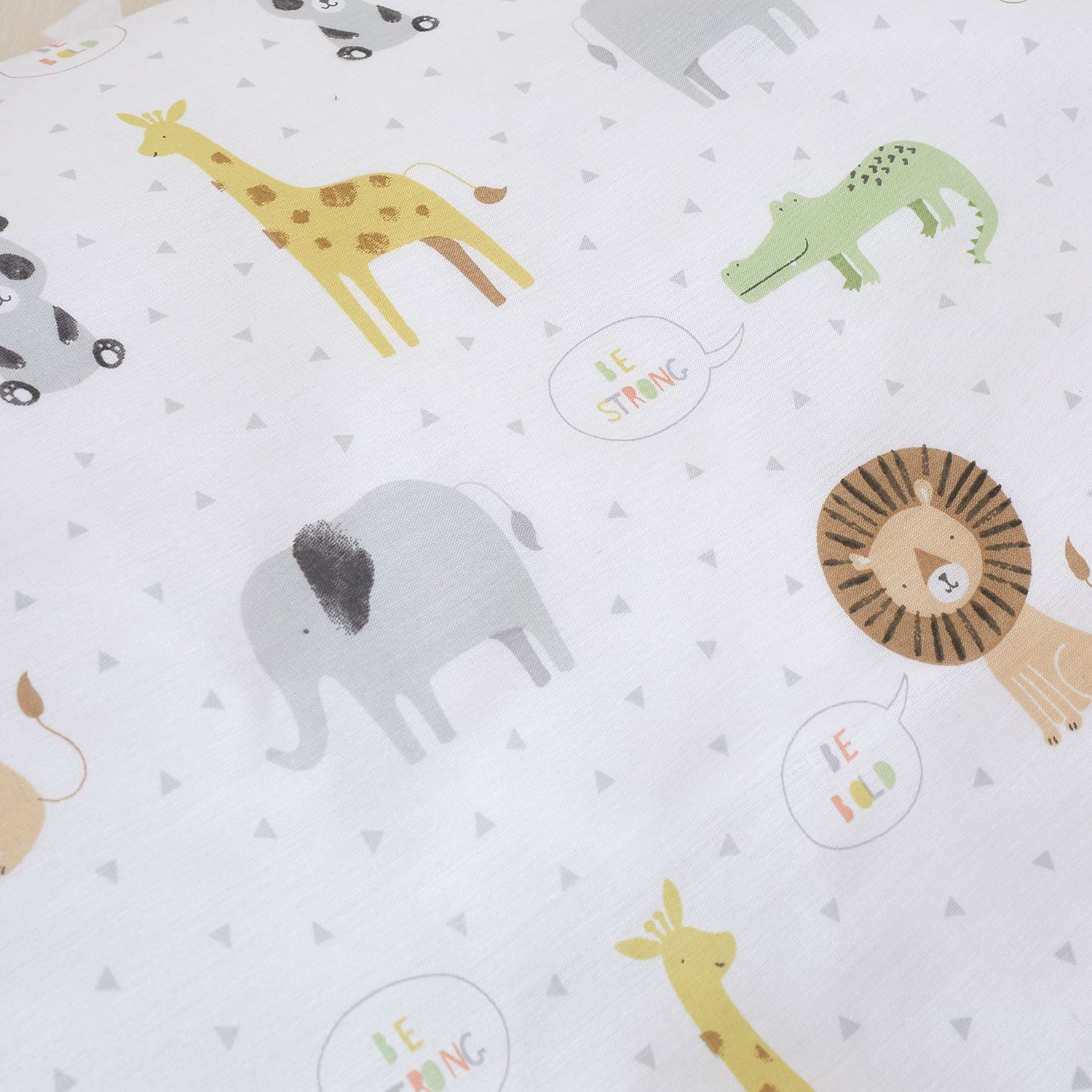 In a hand-drawn Scandi style, this fun design featuring charming animals has positive messages for the happy future, a perfect addition to your child's safari-themed room.