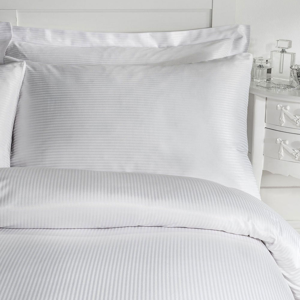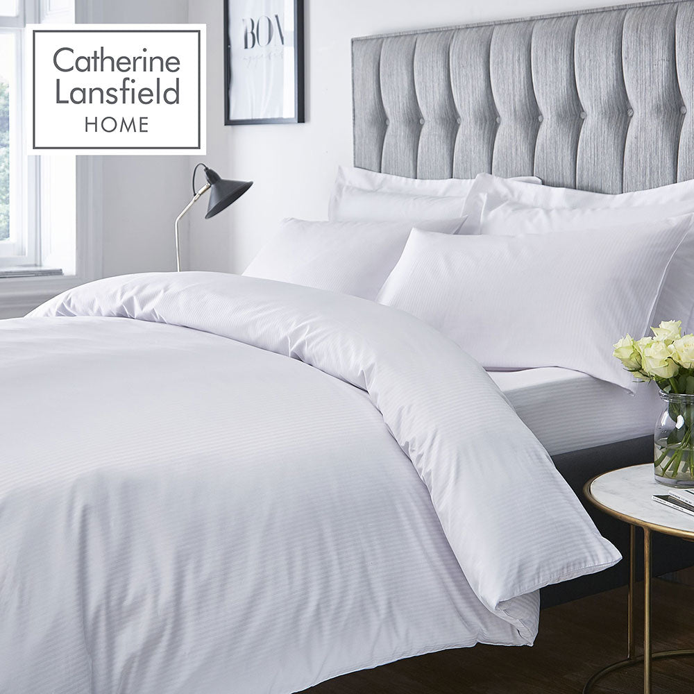 Catherine Lansfield White Satin Stripe 300TC Duvet Set