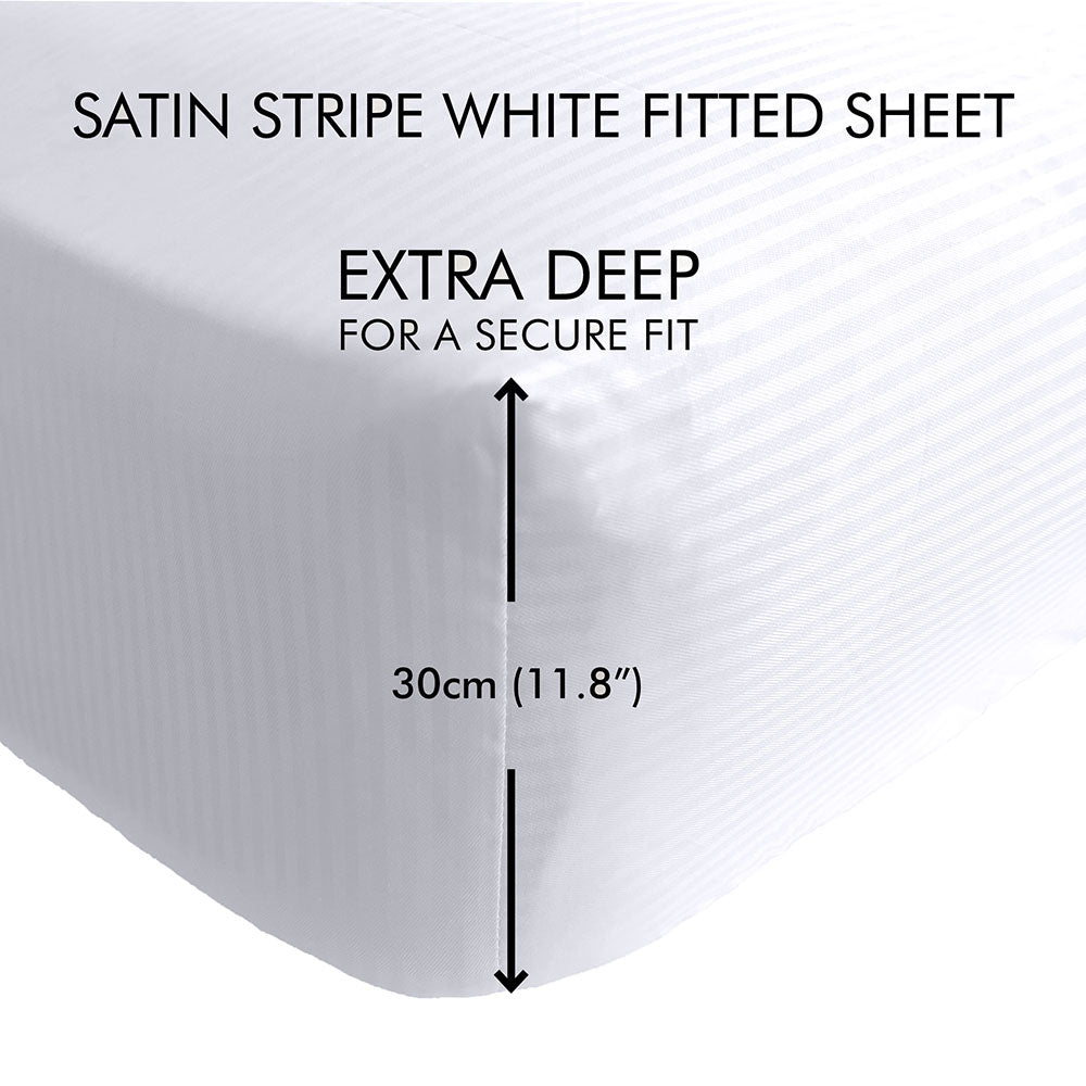 Catherine Lansfield White Satin Stripe 300TC Deep (32cm) Fitted Sheet