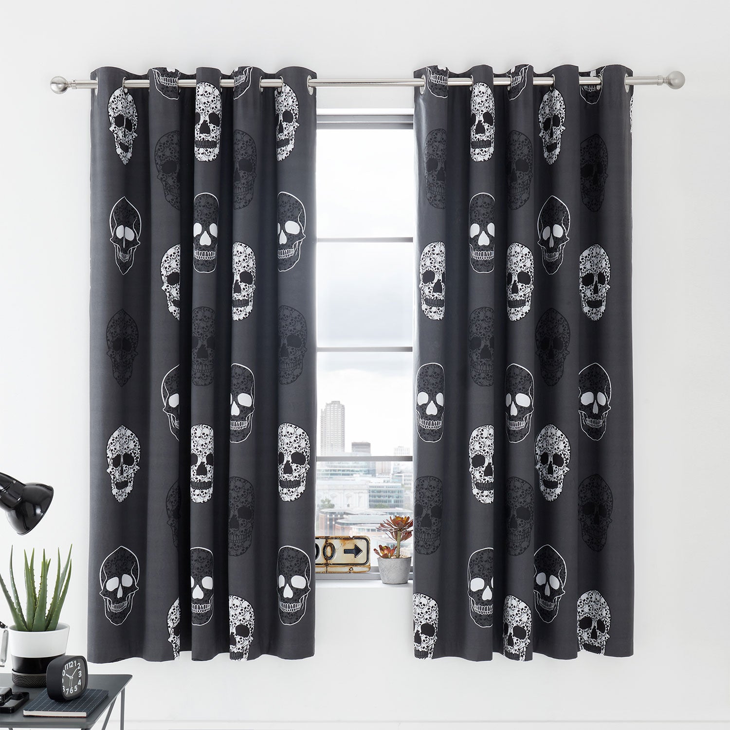 Catherine Lansfield Skulls Reversible Eyelet Curtains