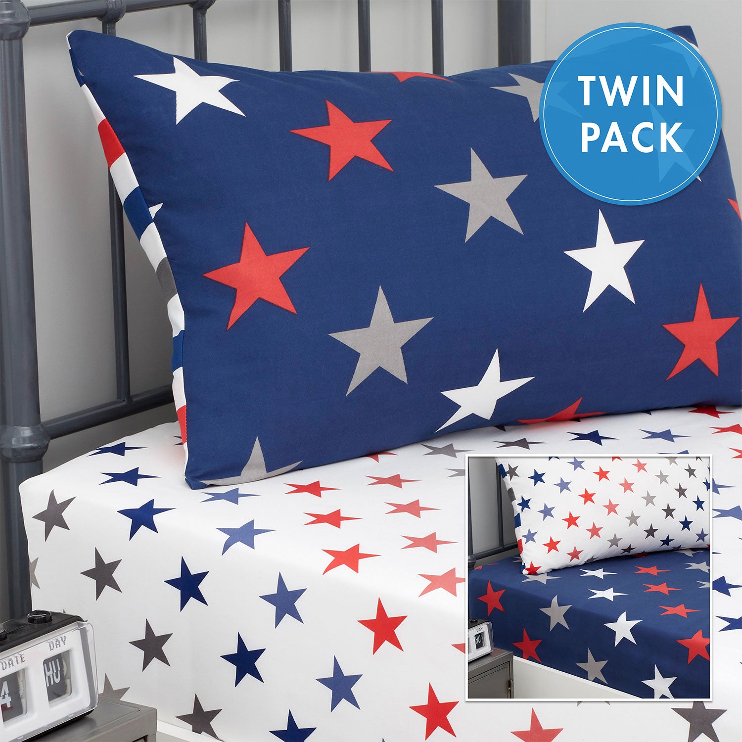Your little ones will love the American styling of these patriotic stars and stripes designs. These sheeting sets give you two complementary looks in one, with the bonus of having an alternative sheet while the other is washing to help make the bed changing process easier.