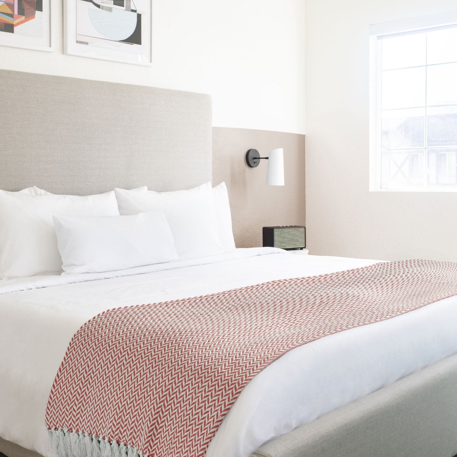 This throw combines modern design with sustainable comfort. Made from 100% recycled cotton, it features a bold two-tone geometric weave that adds contemporary style while being kinder to the planet. Lightweight yet cosy, it’s breathable enough for year-round use — keeping you warm without overheating.