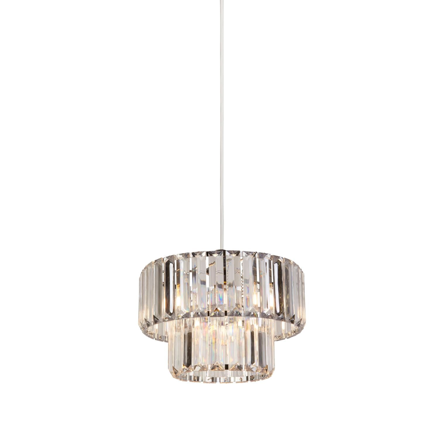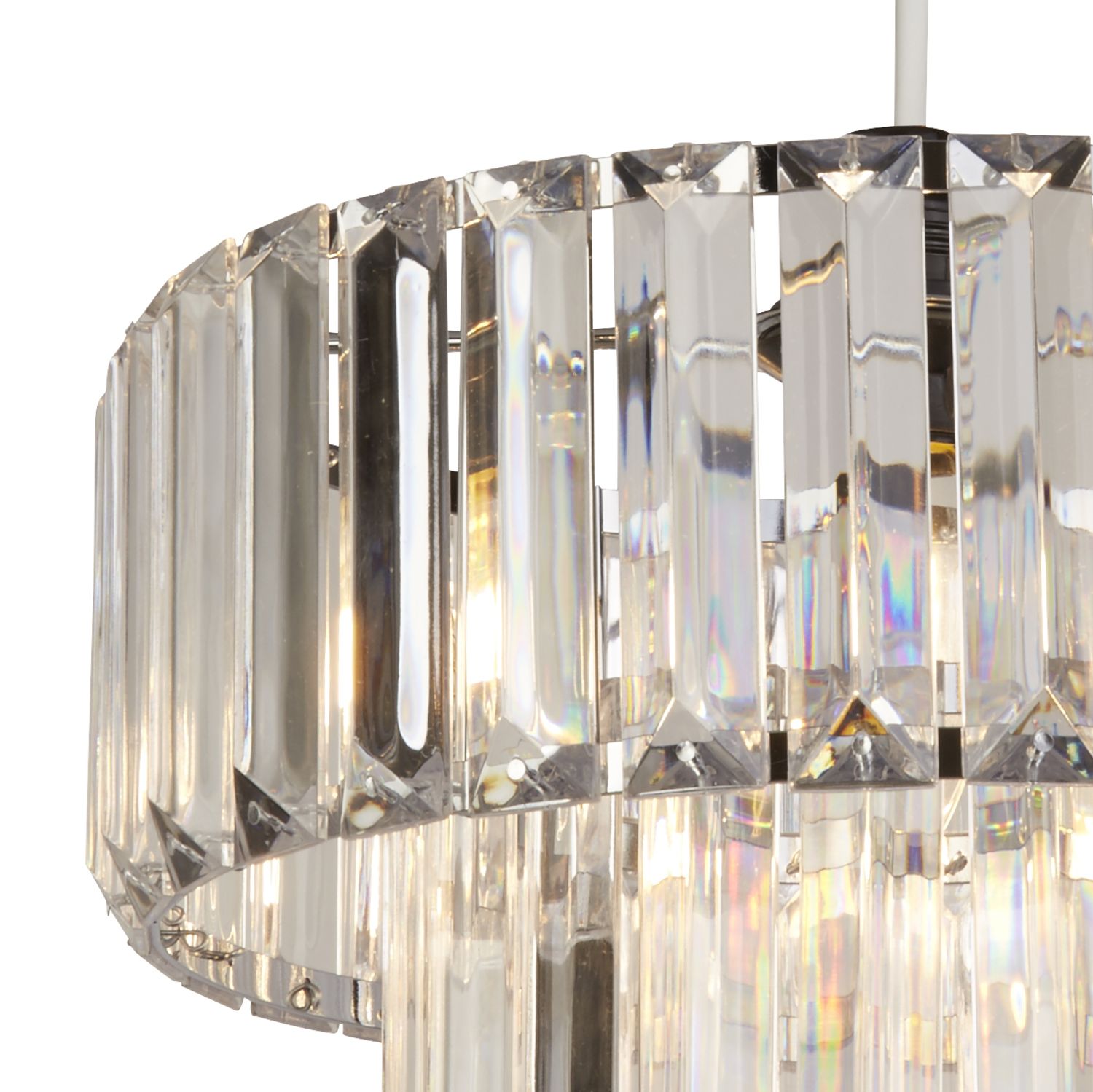 The shade includes a two tier design with a clear, chrome finish. The shade illuminates your space with its see through light design.