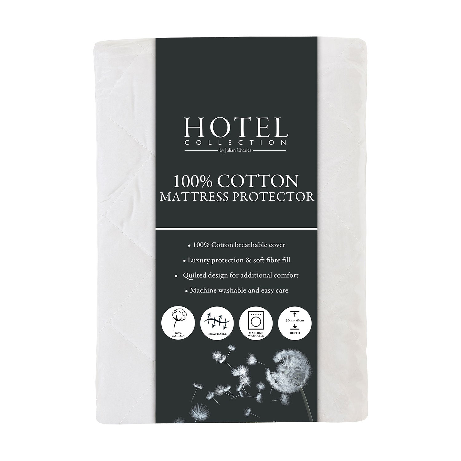 Crafted for comfort, designed for durability. Our 100% Cotton Mattress Protector is part of our Hotel Collection - where luxury meets practicality. Made with breathable, natural cotton, it provides a soft, quiet layer of protection without compromising on comfort.