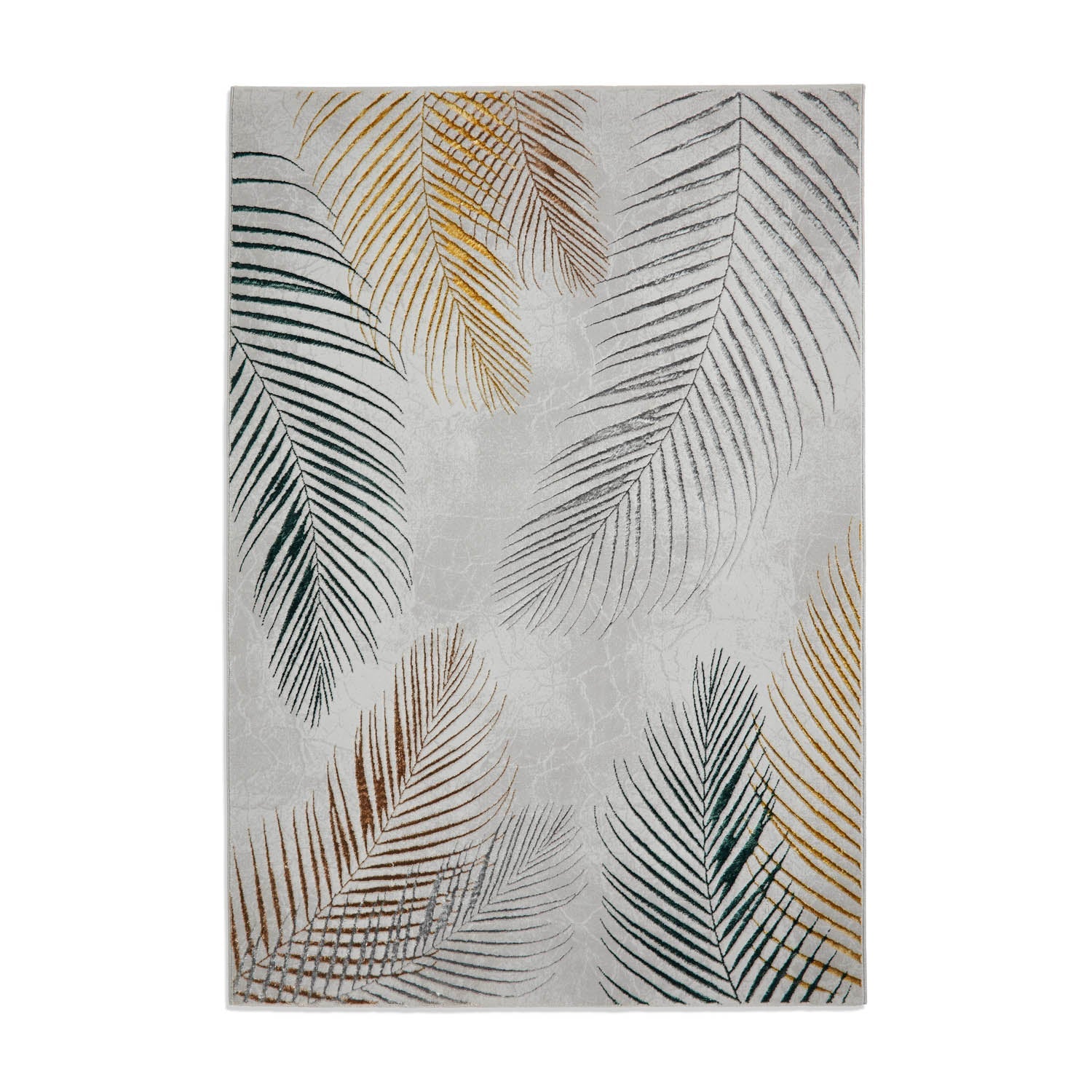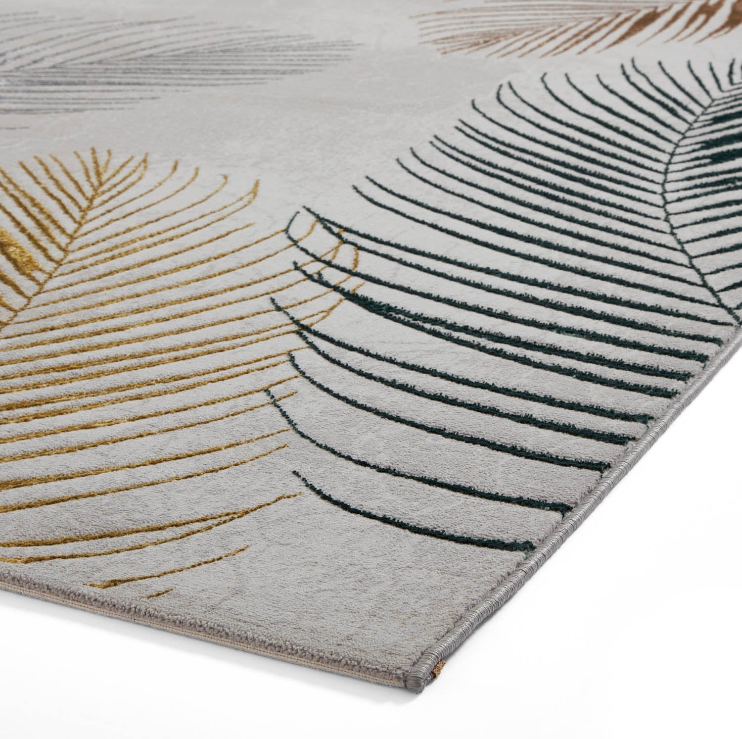 The Creation 50051 Rug features a botanical leaf design in shades of grey and neutral multi-tones, perfect for adding that special something to your home.