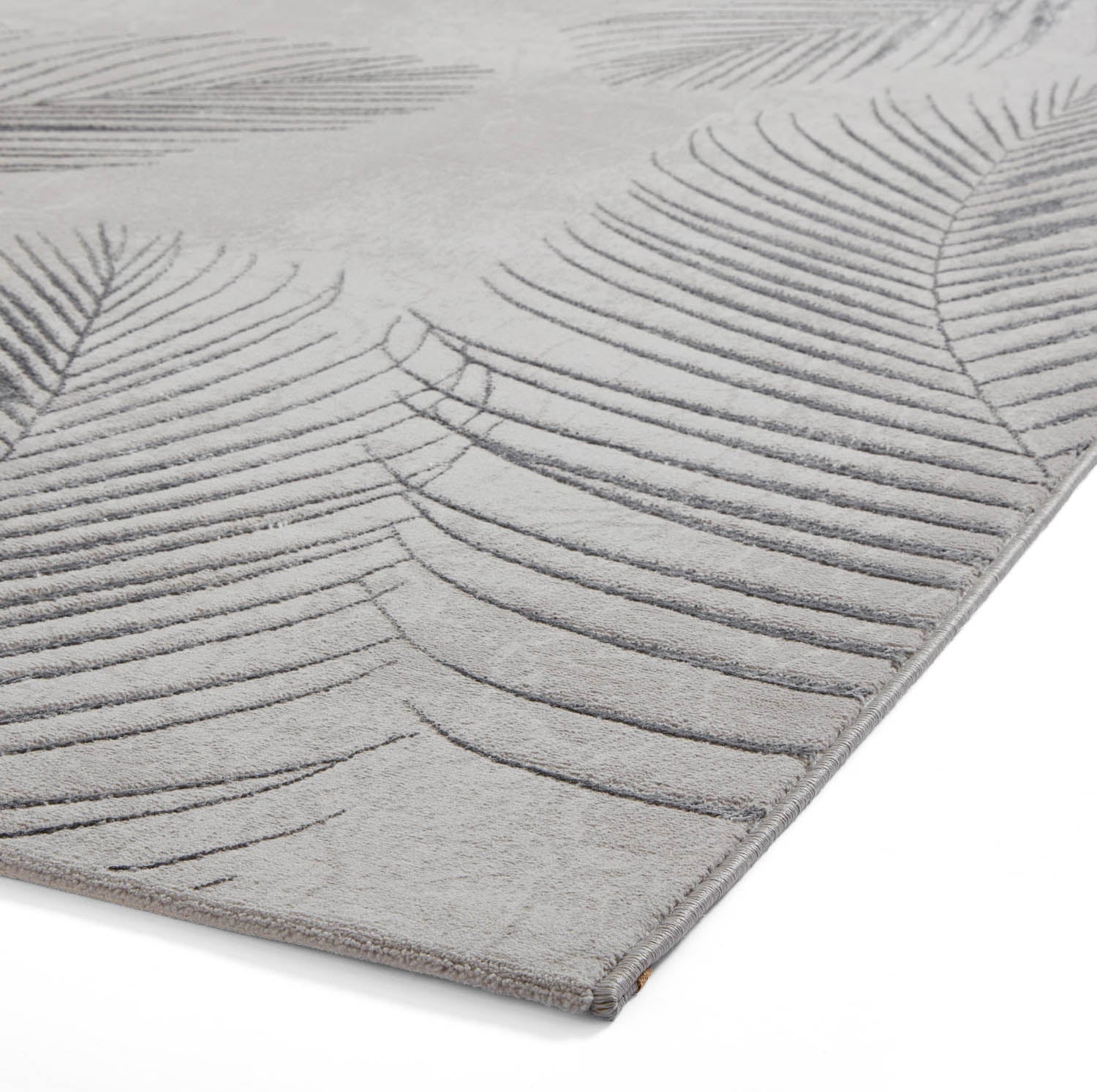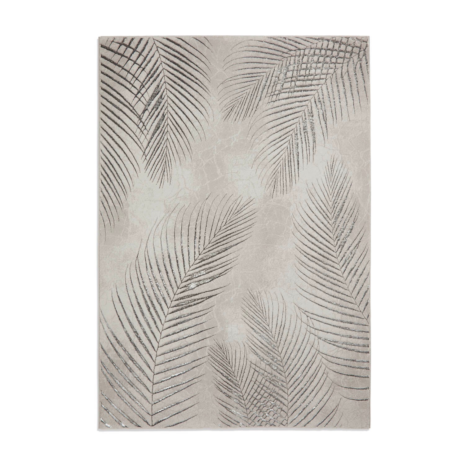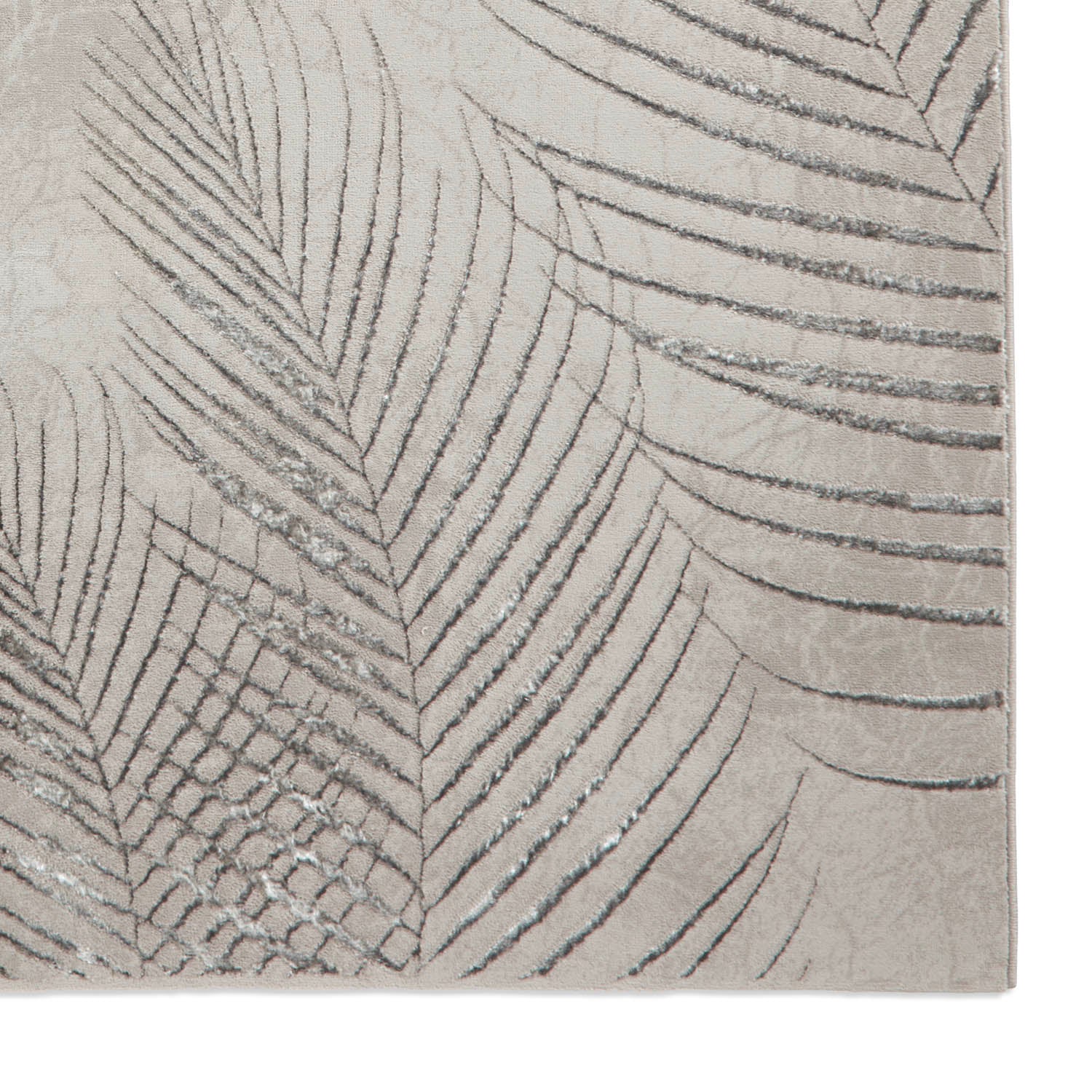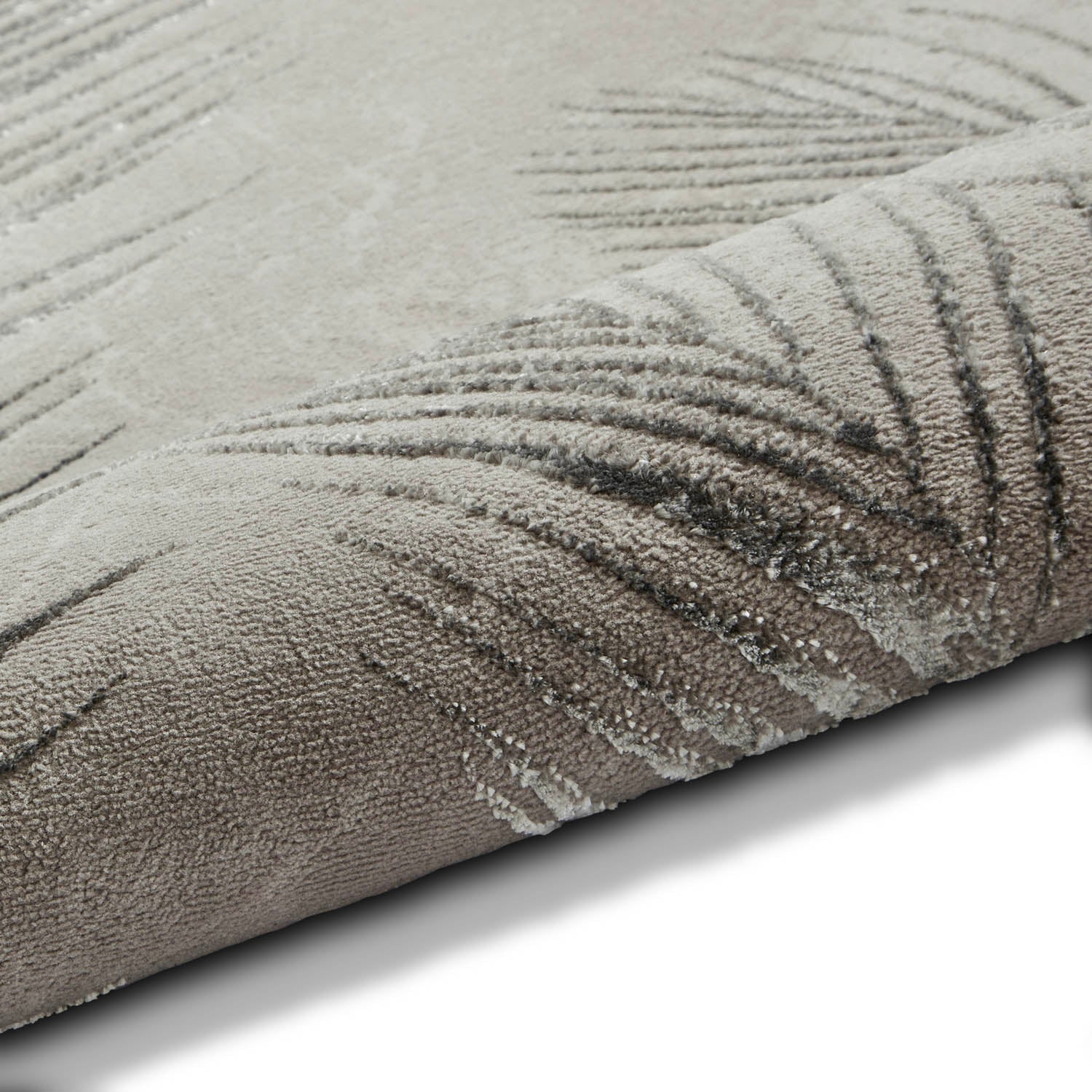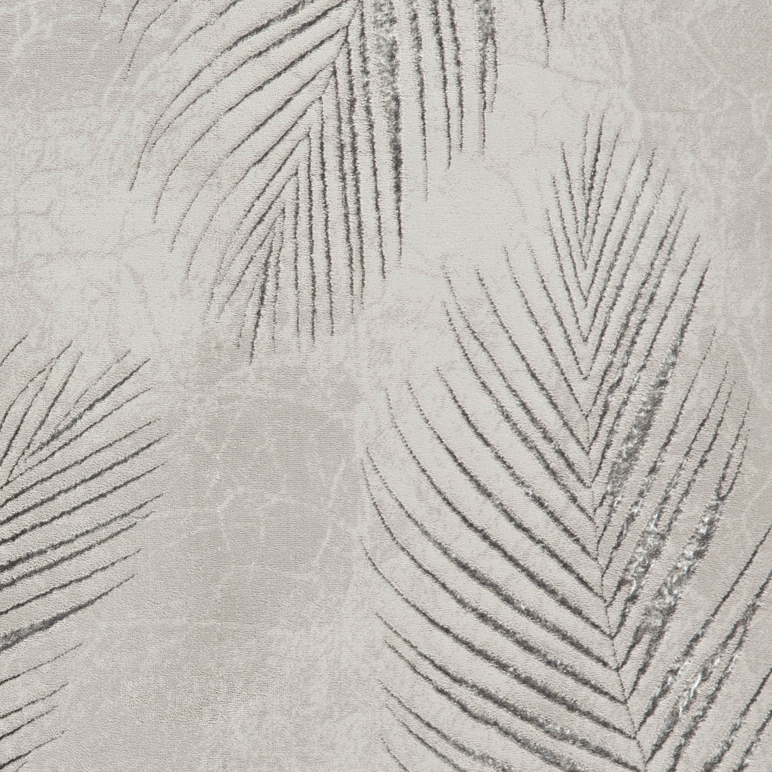 The Creation 50051 Rug features a botanical leaf design in shades of grey and silver, perfect for adding that special something to your home.