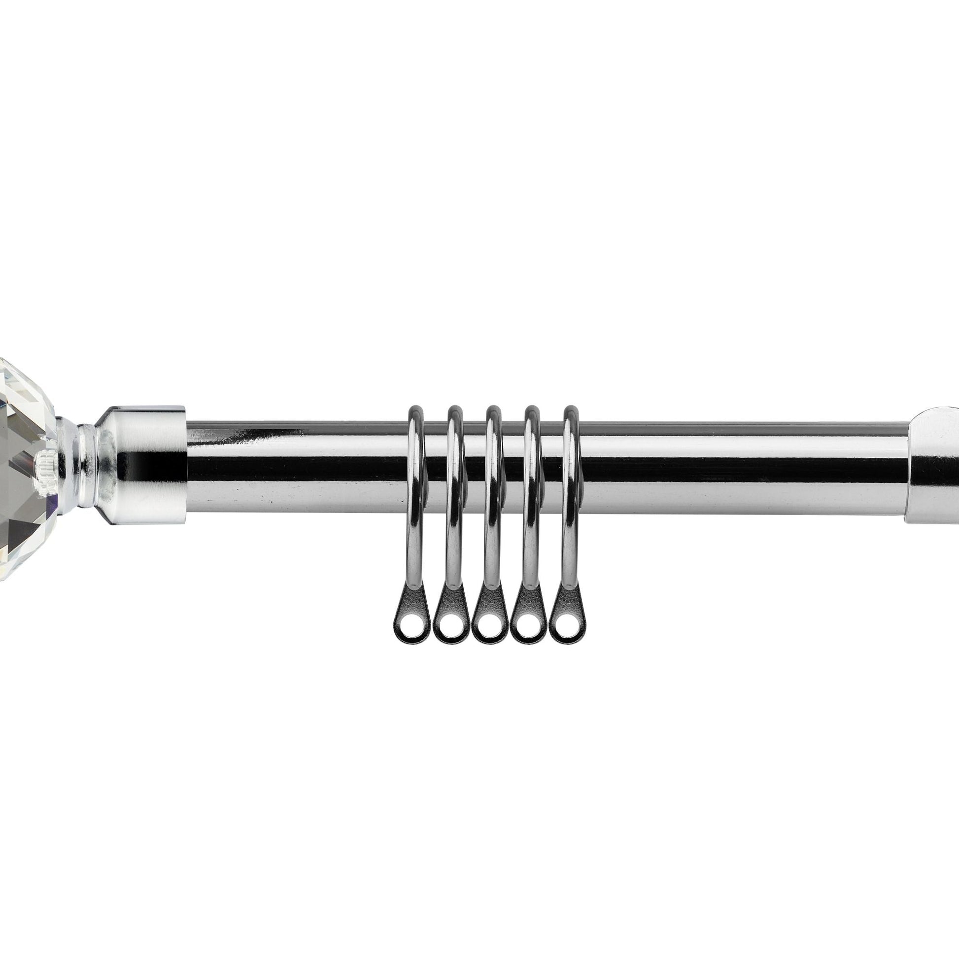 This Chrome Crystal Extendable Curtain Pole is designed for any type of curtain (eyelet or pencil pleat) and includes optional curtain rings for the purpose of hanging pencil pleat curtains.