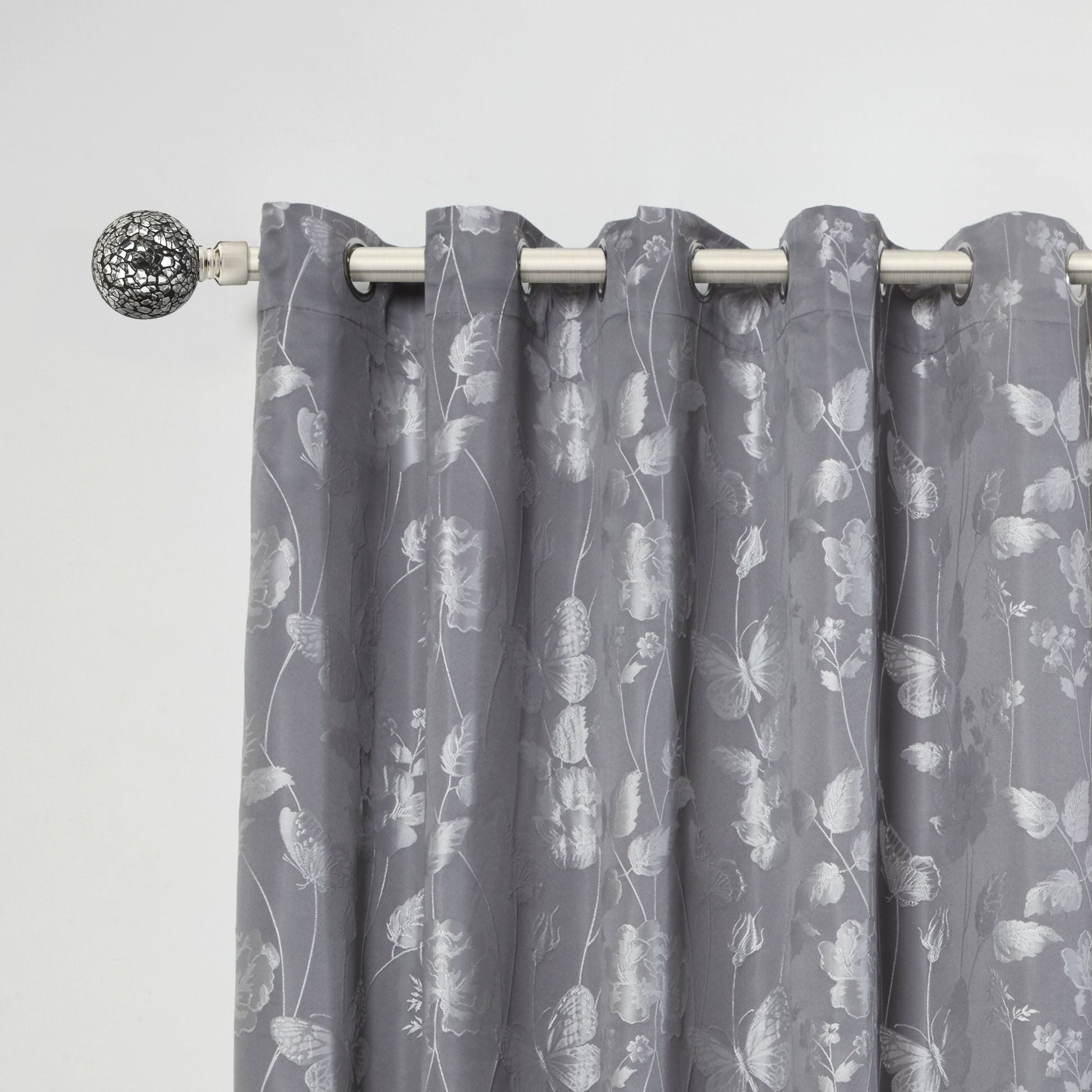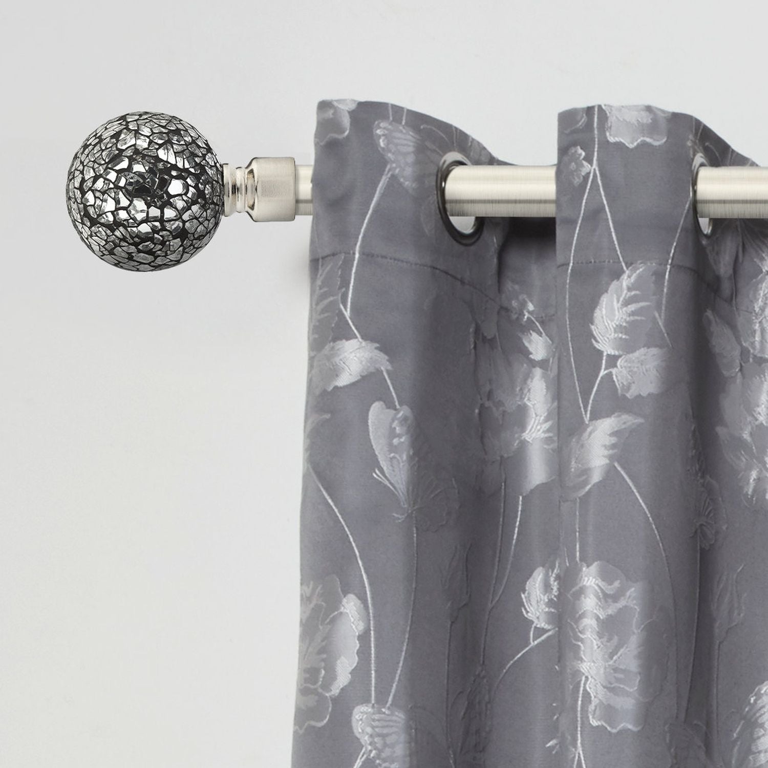 This Brushed Silver Cut Glass Extendable Curtain Pole is designed for eyelet or slot top curtains and voiles, so does not include unnecessary curtain rings.