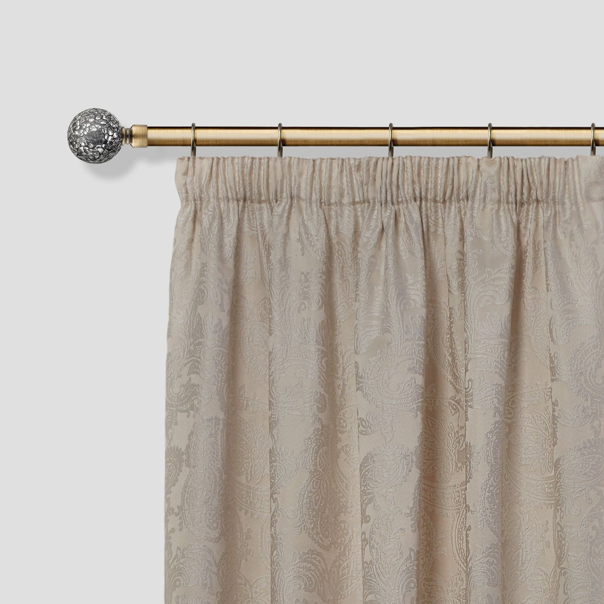 This Antique Brass Cut Glass Extendable Curtain Pole is designed for any type of curtain (eyelet or pencil pleat) and includes optional curtain rings for the purpose of hanging pencil pleat curtains.