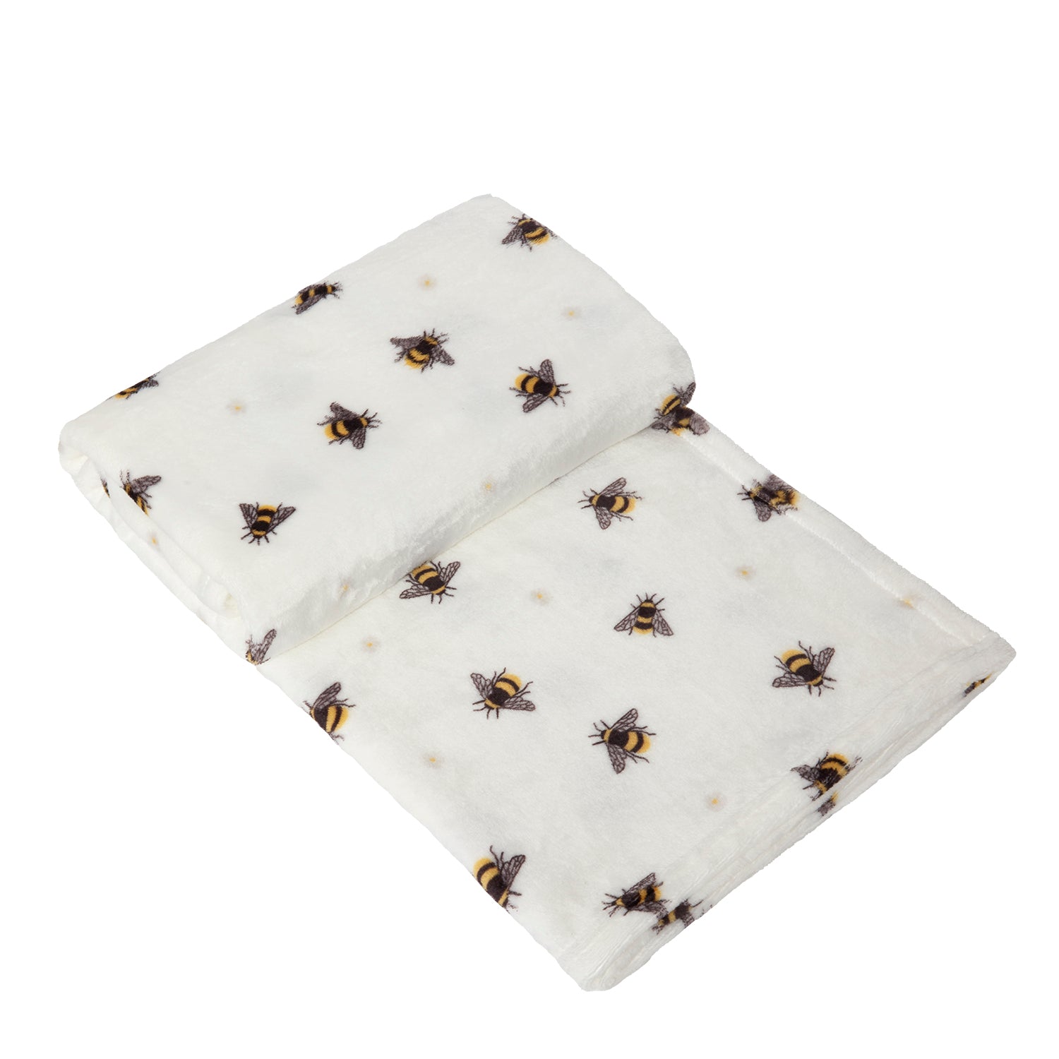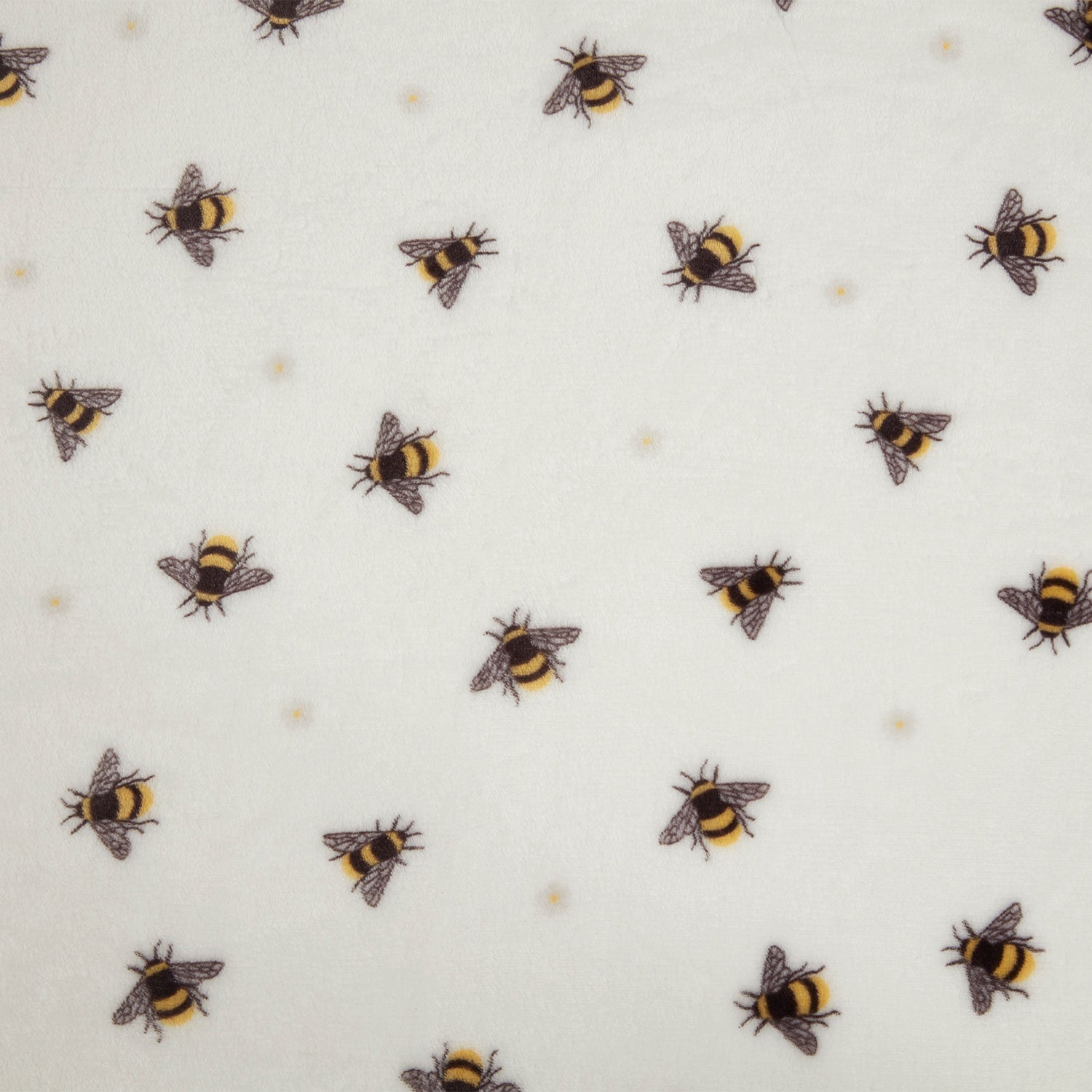 Our Daisy Bee Fleece Throw featuring a delightful ditsy daisy and bee scattered print design, perfect for adding a touch of whimsy and warmth to your home.