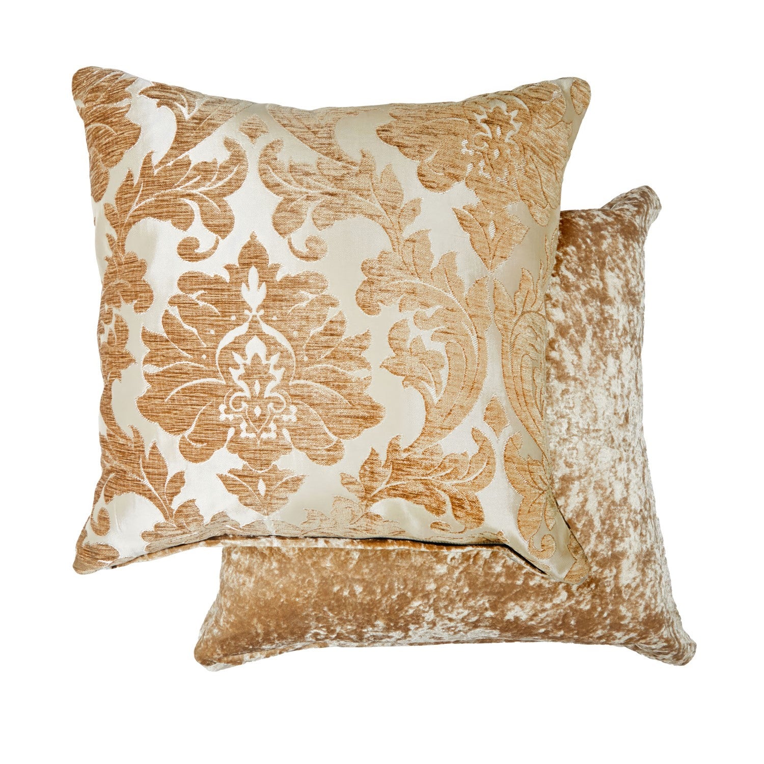 Damask Coffee Chenille Jacquard Cushion Cover Pair (43cm x 43cm)