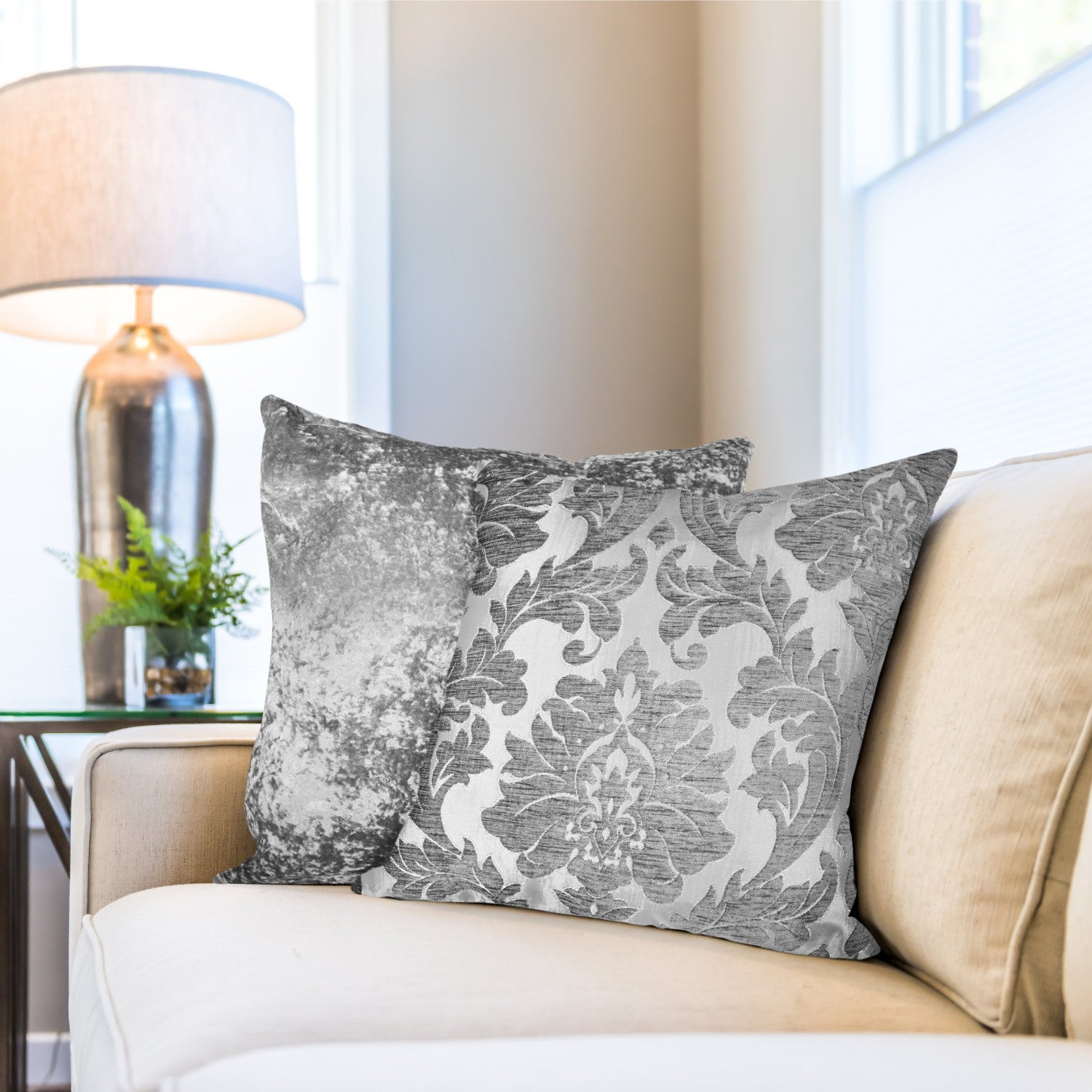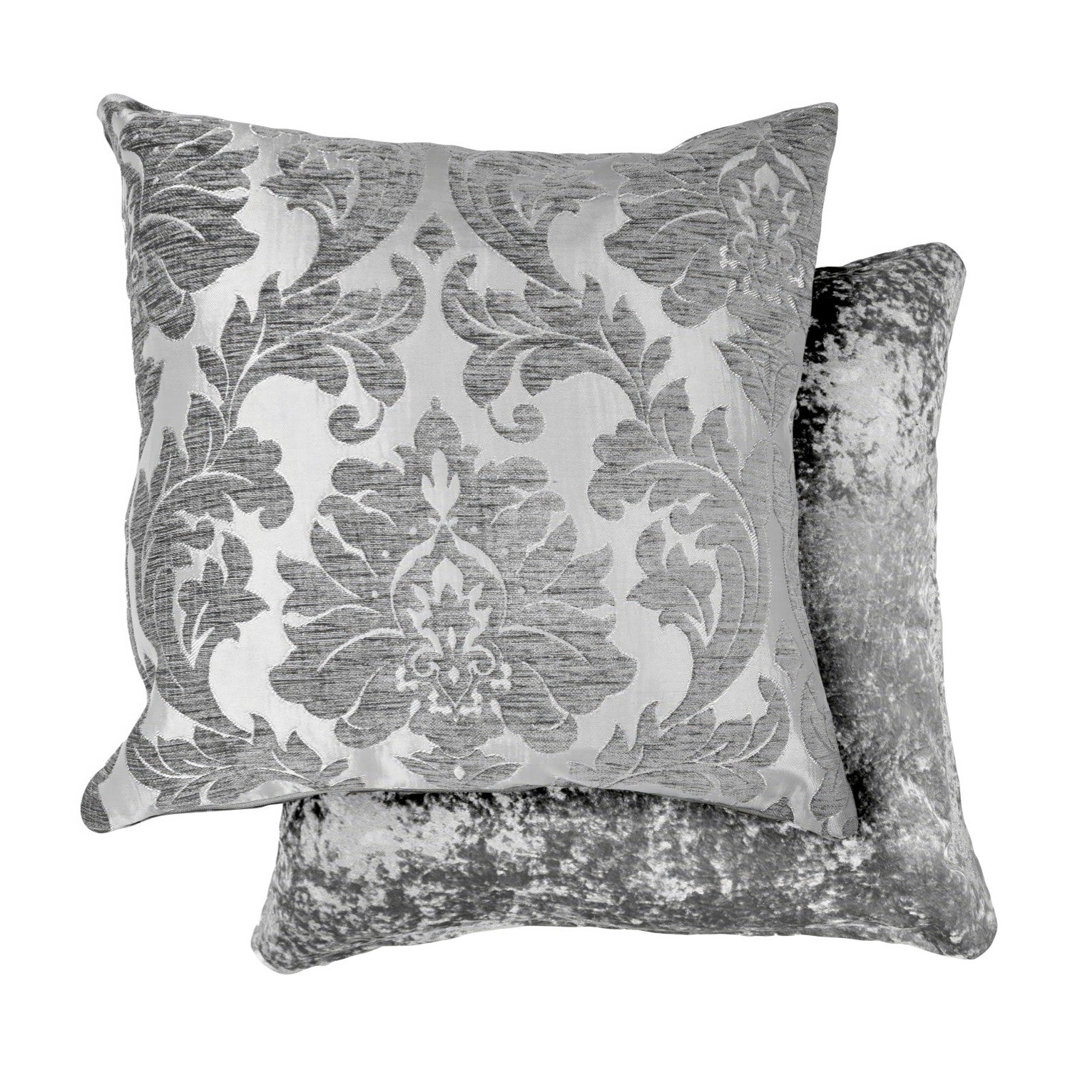 Damask Silver Chenille Jacquard Cushion Cover Pair (43cm x 43cm)