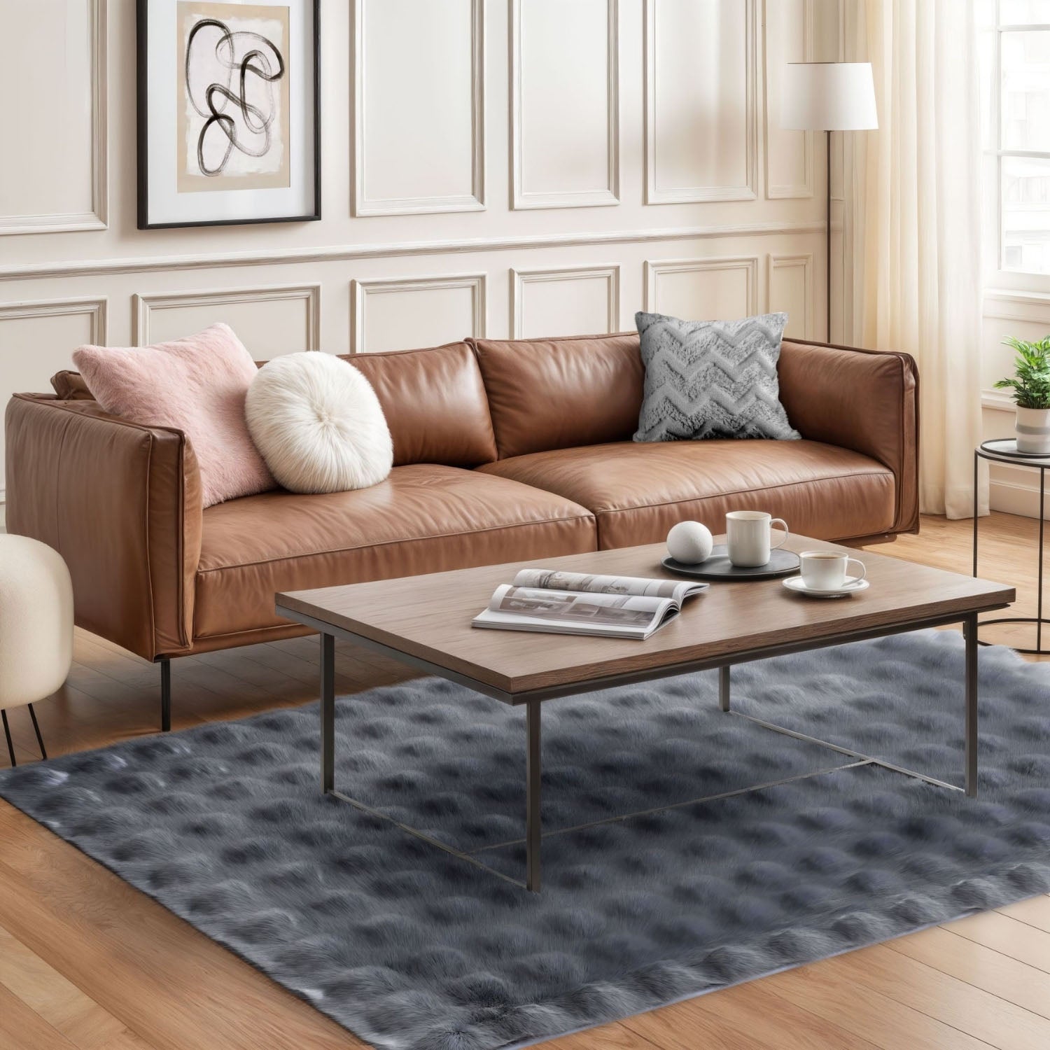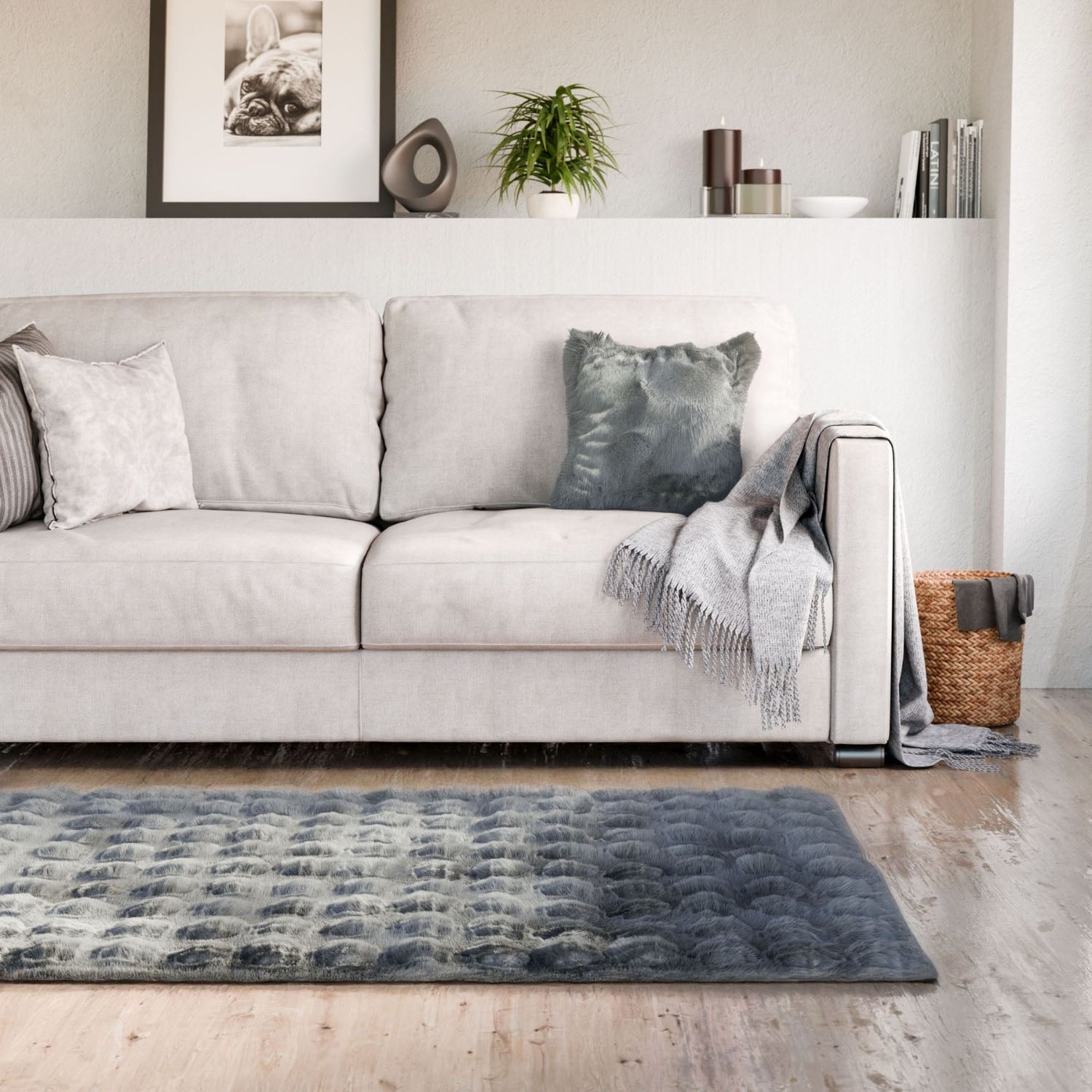 Deluxe Charcoal Faux Rabbit Fur Room Rug