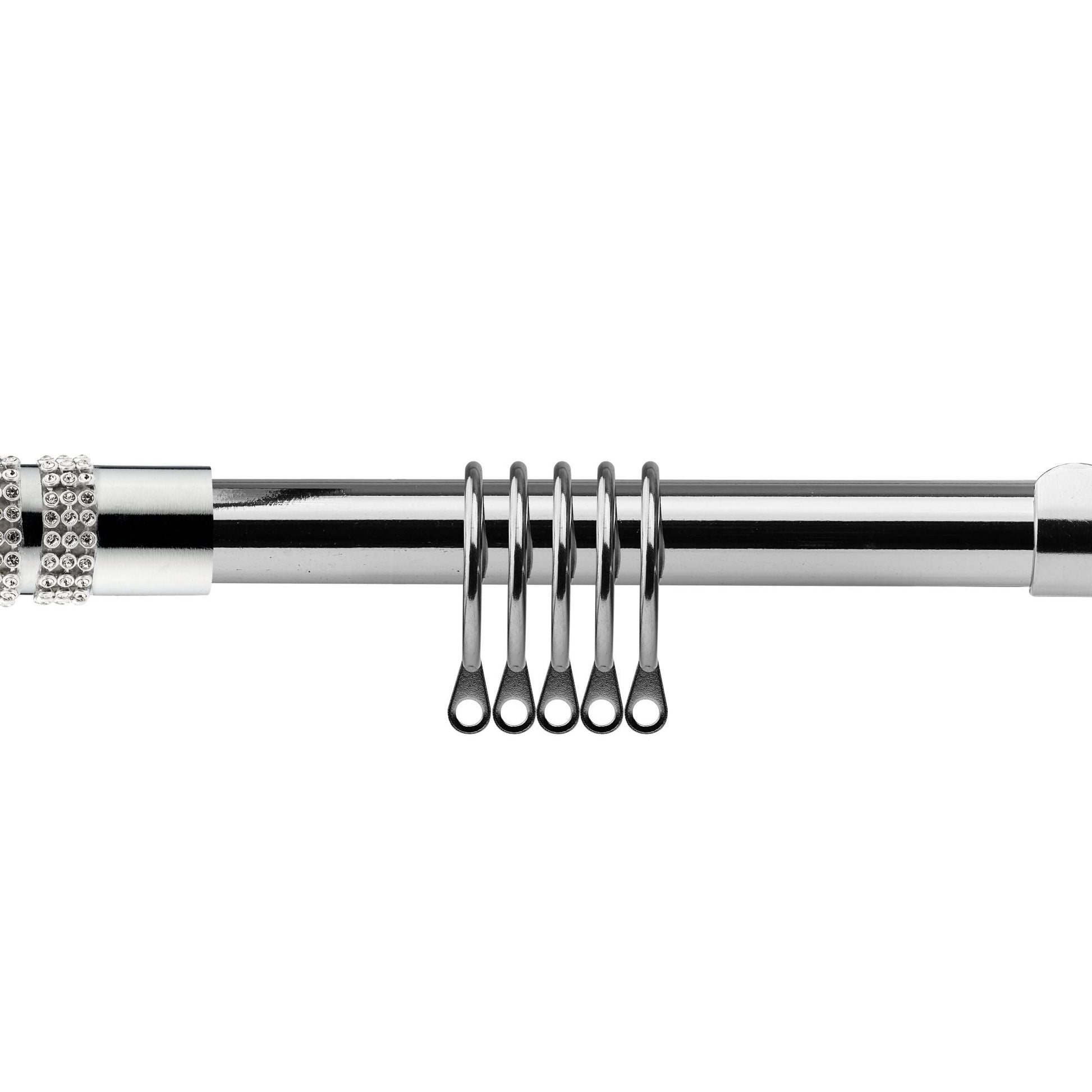 This Chrome Diamante Extendable Curtain Pole is designed for any type of curtain (eyelet or pencil pleat) and includes optional curtain rings for the purpose of hanging pencil pleat curtains.