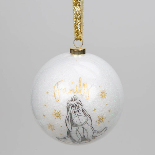 Bring some timeless Disney sparkle to the tree with this set of 15 white glitter baubles. This is the perfect set for a Disney fan or collector of any age. Featuring elegant black and white pencil style original Disney illustrations, the finest quality materials and beautiful packaging, this is a luxury and timeless ornament collection for the enduring Disney fan.