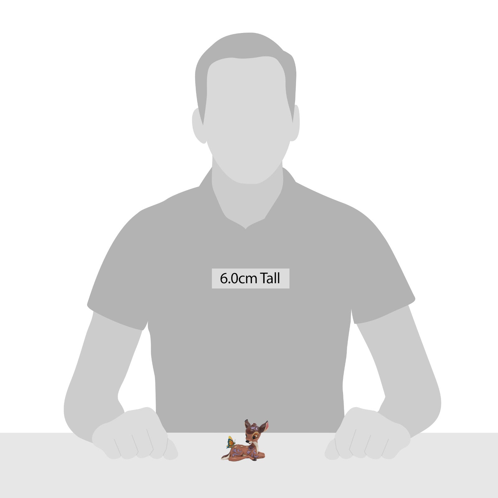 Jim Shore celebrates the 80th anniversary of Bambi with this sweet miniature, as the peaceful deer sits gracefully with a butterfly.