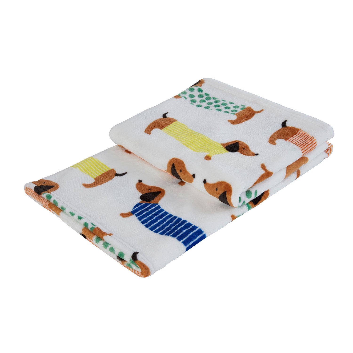 Dog Pals Sausage Dog Printed Fleece Throw (130cm x 150cm)