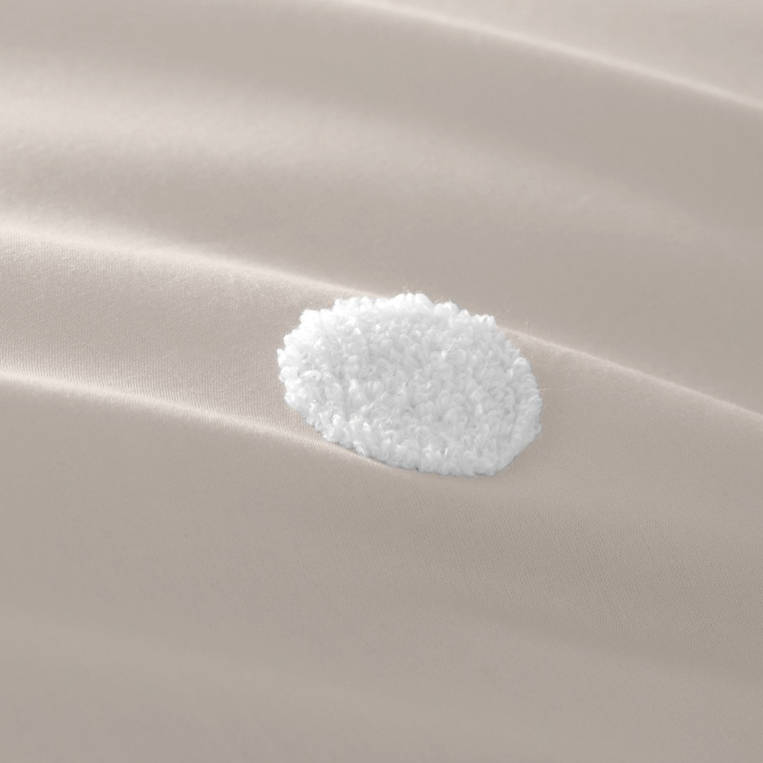 The bedding set features a white polka dot tuft on a subtle natural base. Pillowcase(s) are included with the set.