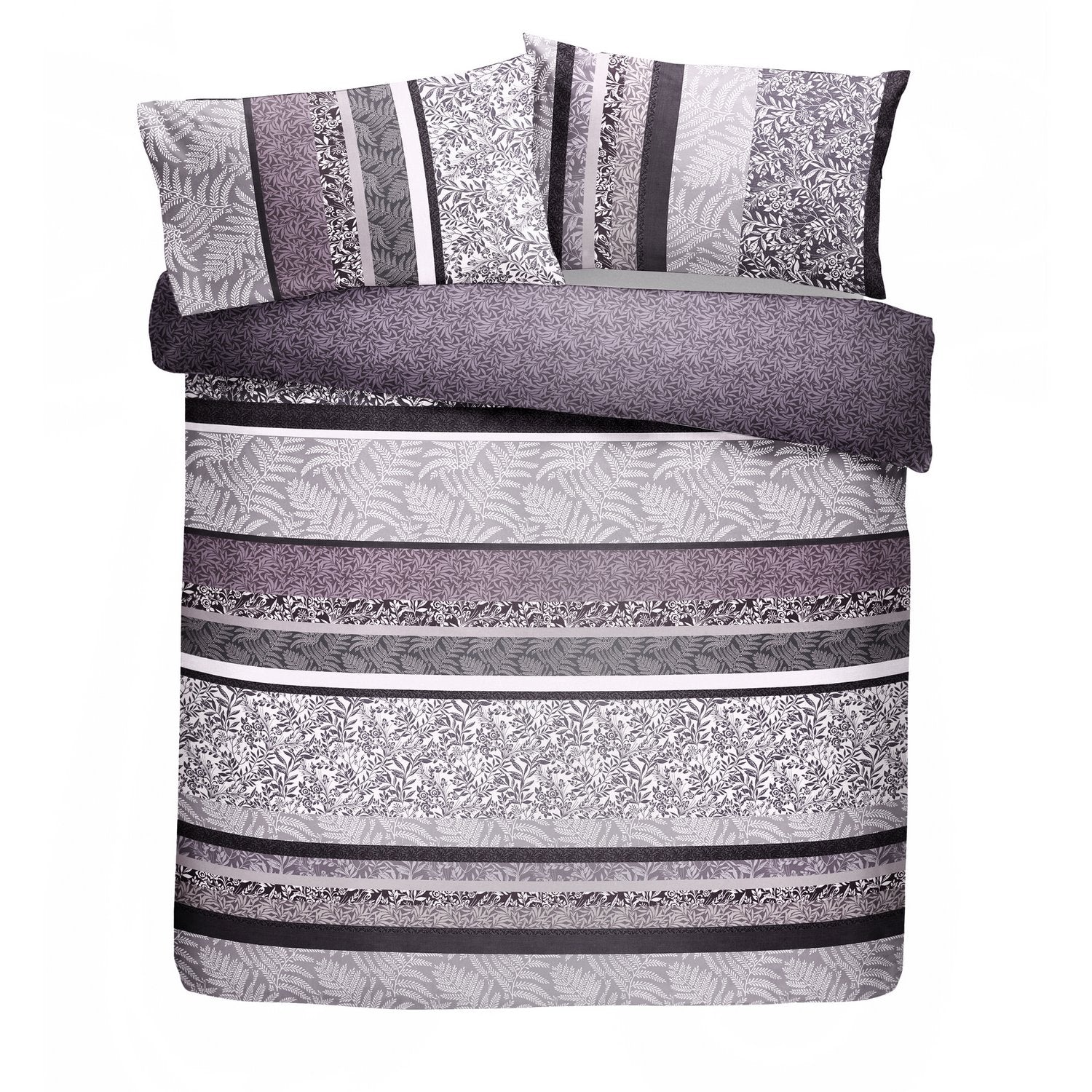 Introducing the Hanworth Heather Reversible Duvet Set, where intricately designed leaves, fronds, and fauna come together to form a breath-taking print in gorgeous shades of purple. This versatile set is perfect for any bedroom and is made with easy-care polycotton for convenience.