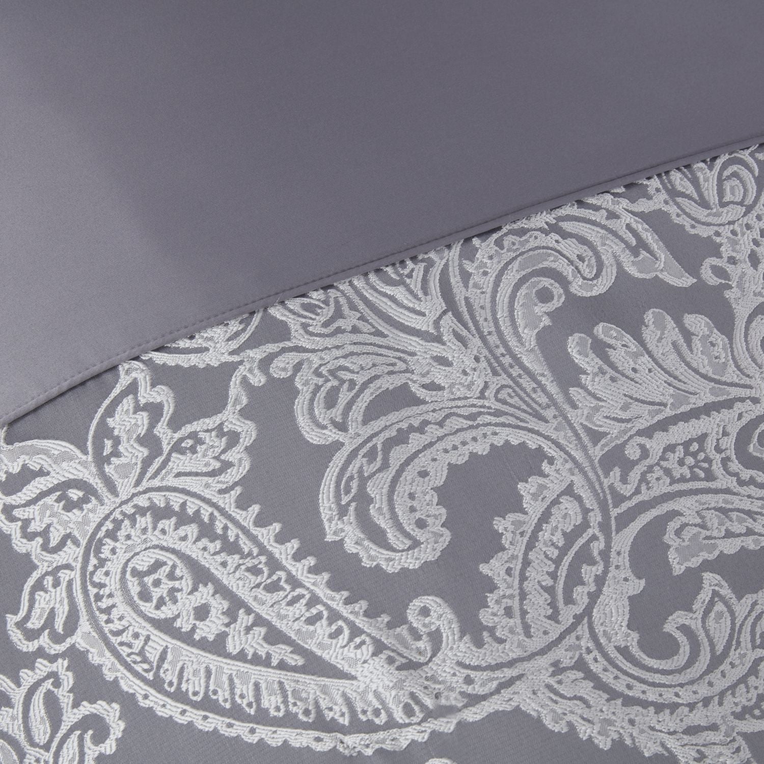 Welcome to the timeless elegance of our Duchess Silver Embellished Jacquard Duvet Set. This exquisite bedding set takes traditional design into the modern era with its luxurious soft sateen and lavish central jacquard paisley pattern. Harnessing an old-world charm that will never be outdated, you'll find yourself thrilled with this delightful duvet set time after time.