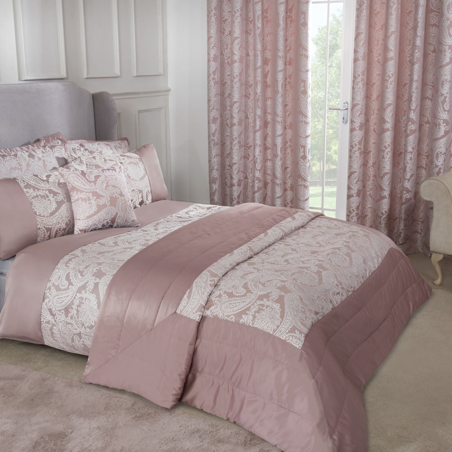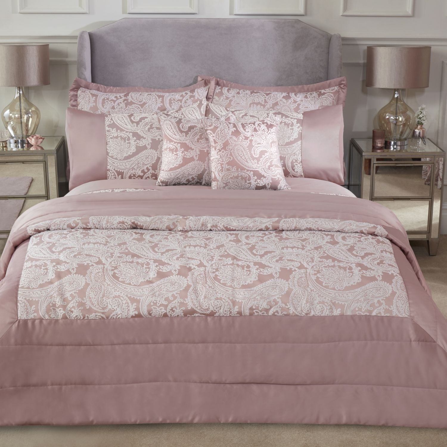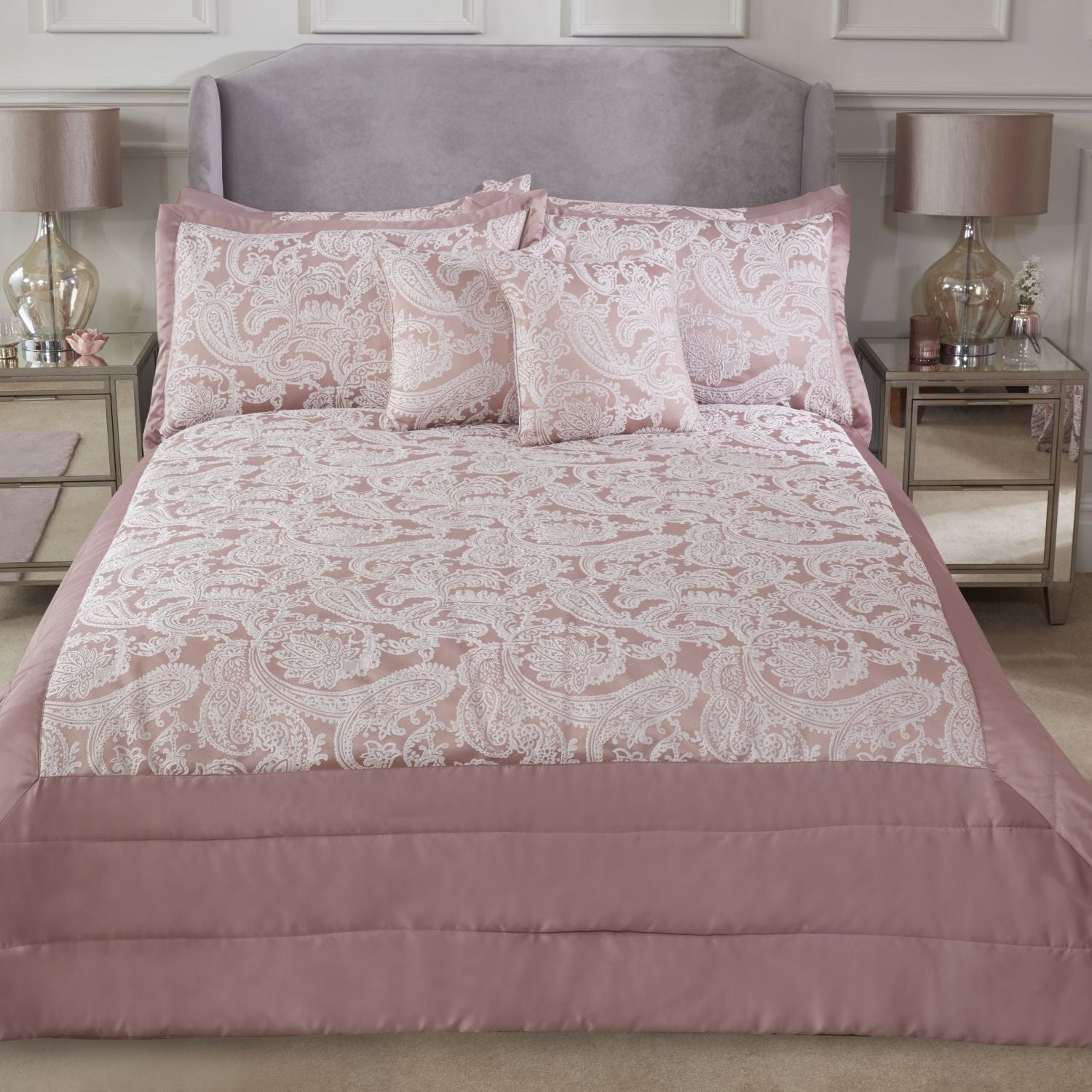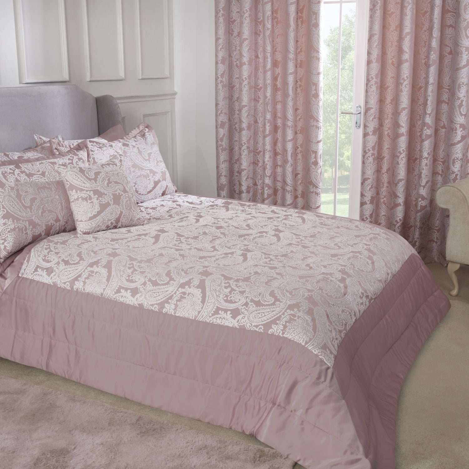 Create a wonderful and inviting bedroom look with the Blush Pink Duchess Embellished Jacquard Quilted Bedspread Set. This luxurious set is perfect for using on double or king size beds, and will certainly make you feel like royalty.