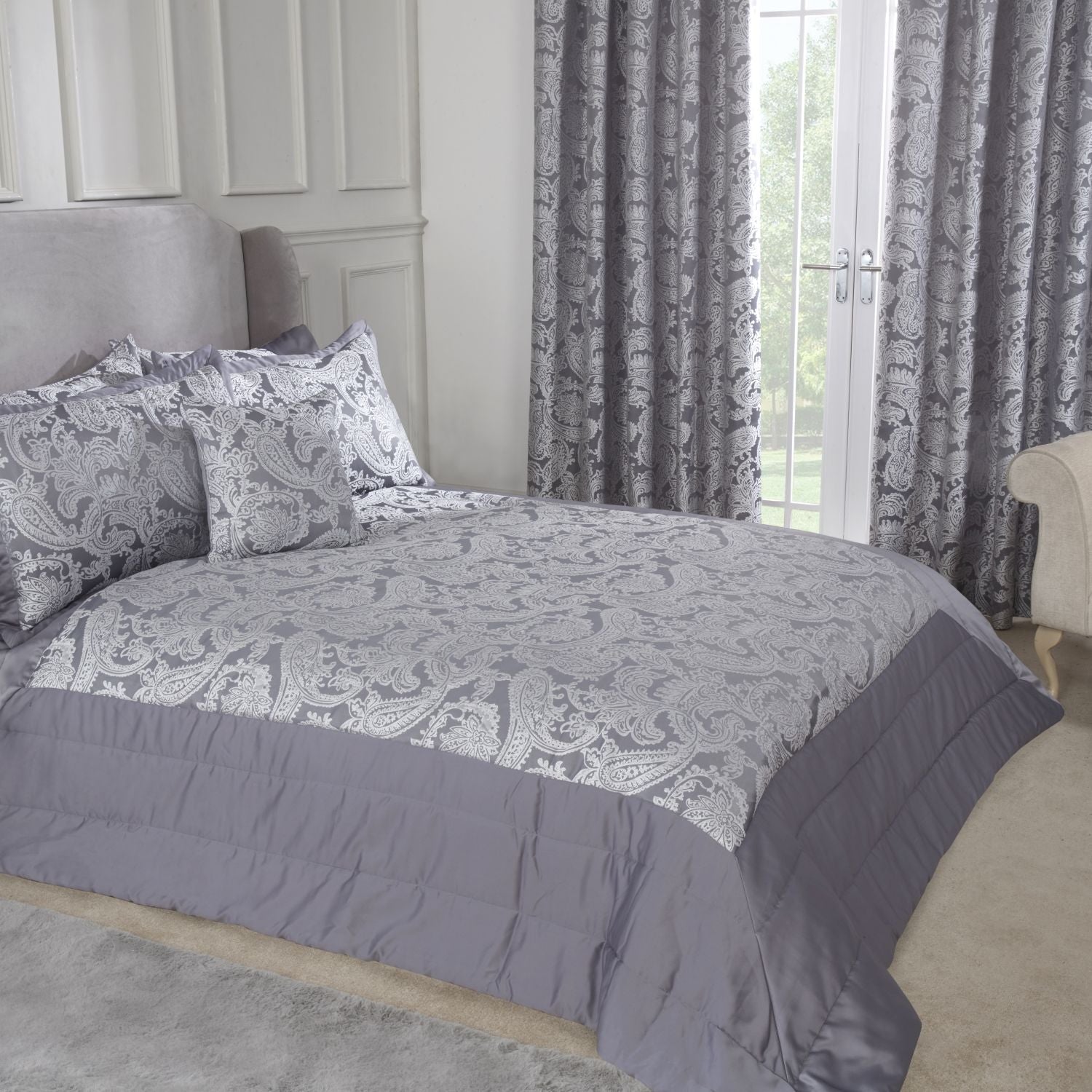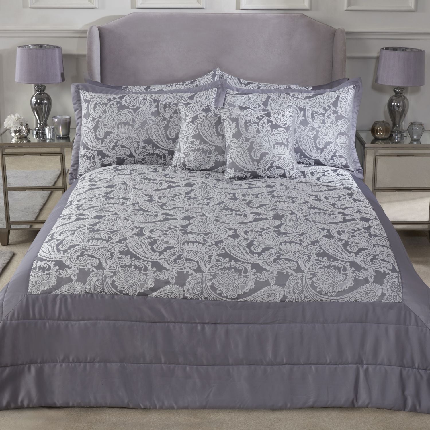 This beautiful Silver Duchess Embellished Jacquard Quilted Bedspread Set is great for adding new life to your bedroom, whether it's used as an attractive bed runner or to cover the whole bed.