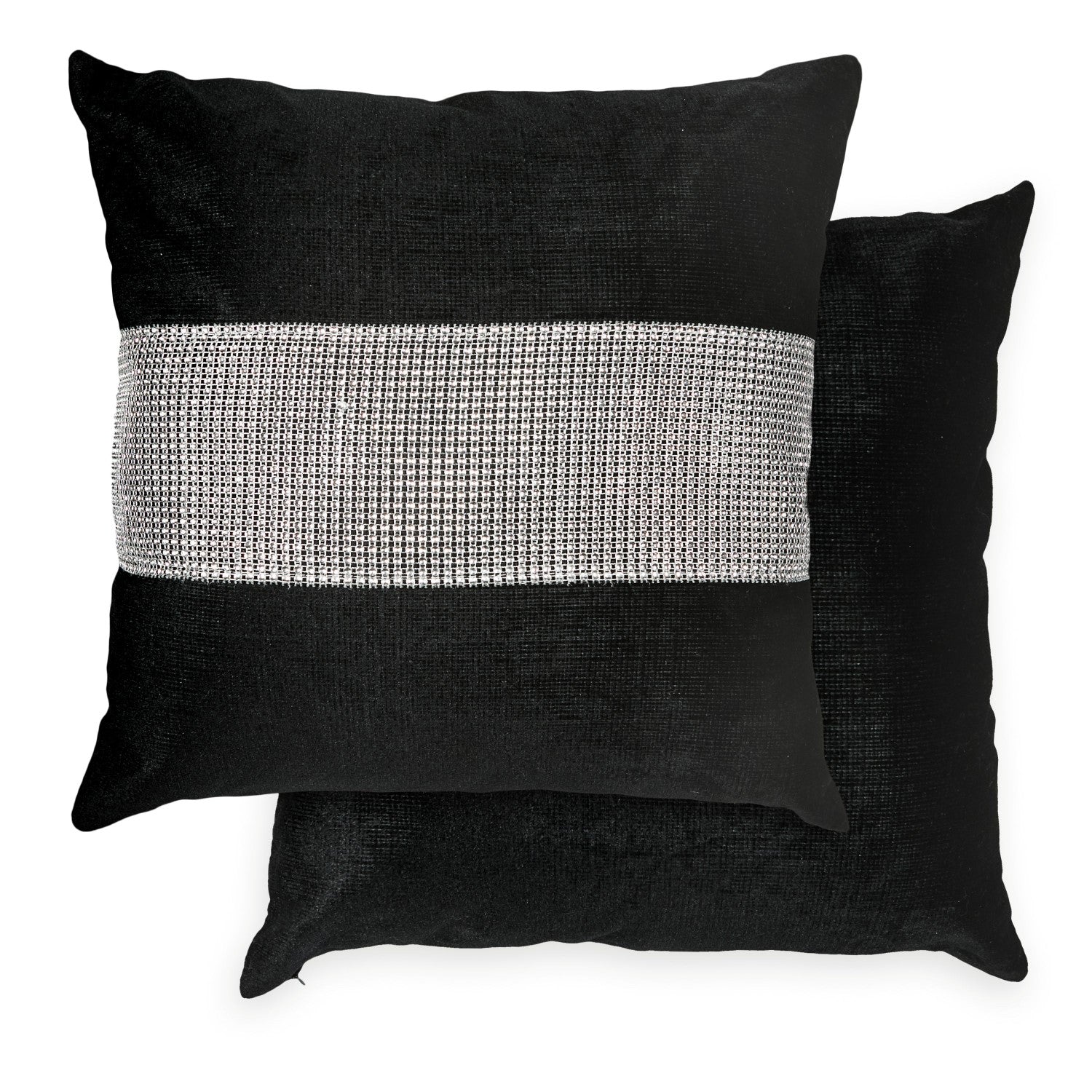 Eclat Diamante Black Panel Velvet Cushion Cover Pair (43cm x 43cm)