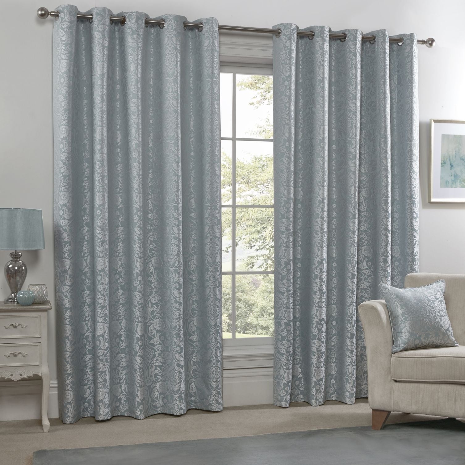 Eden Duck Egg Lined Eyelet Jacquard Curtains