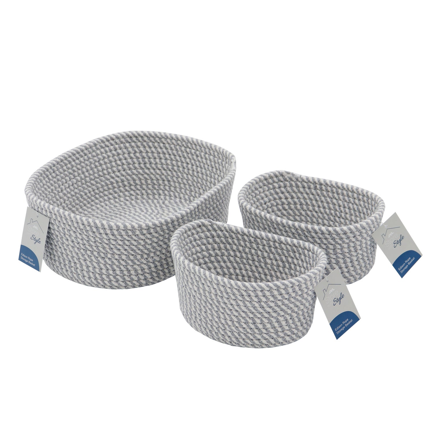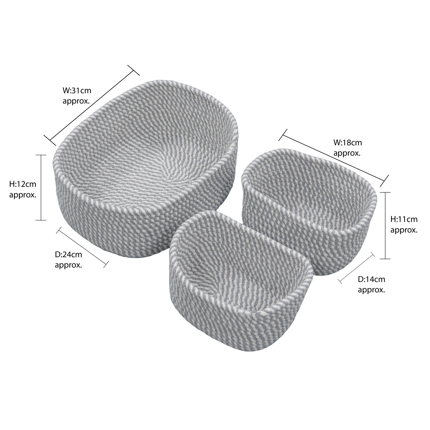 Edison Grey Set of 3 Rectangular Cotton Rope Storage Baskets