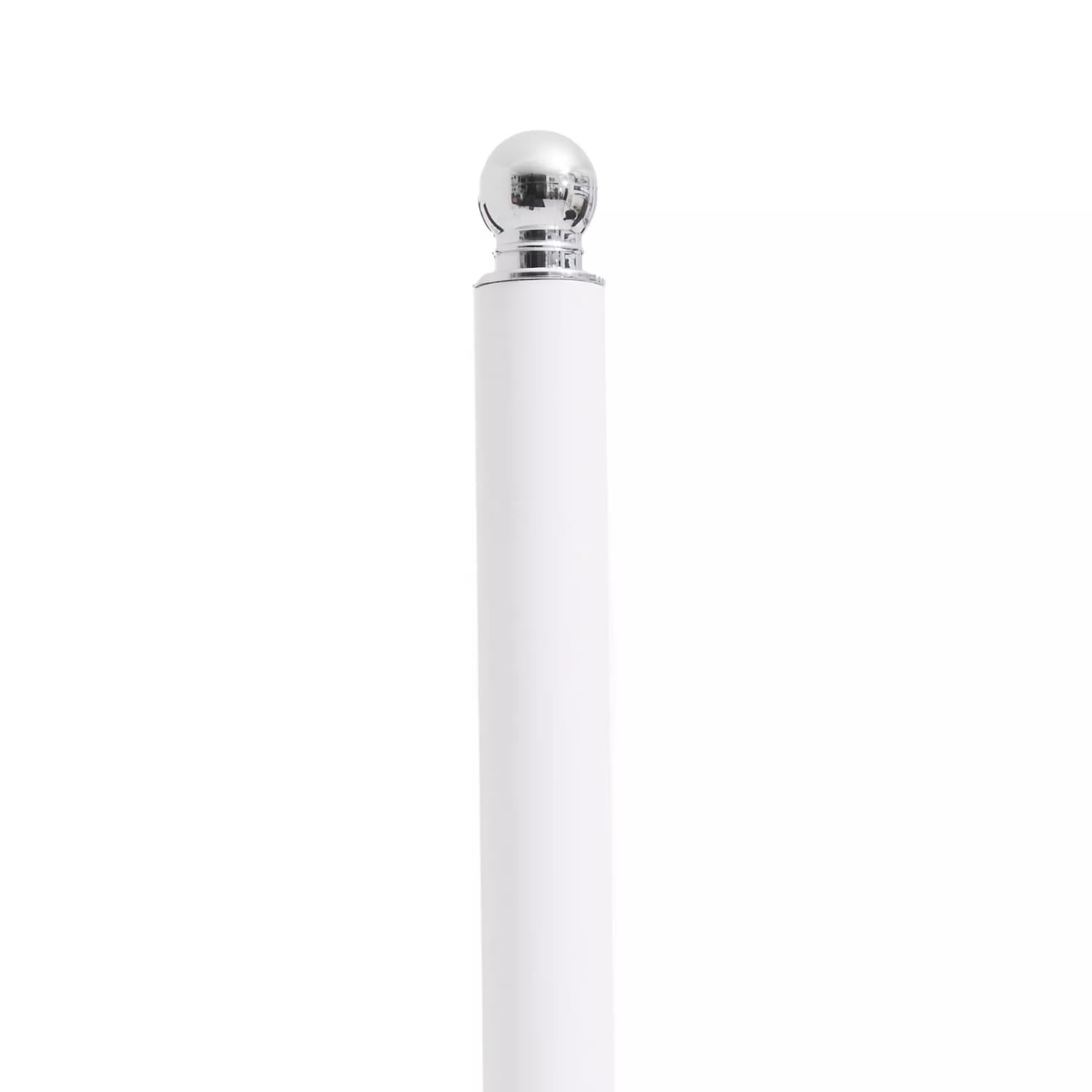 The Adler tall white toilet roll holder has a silver stainless steel top, which is both sleek and practical. The base is crafted from sturdy iron, making it a great addition to any bathroom.