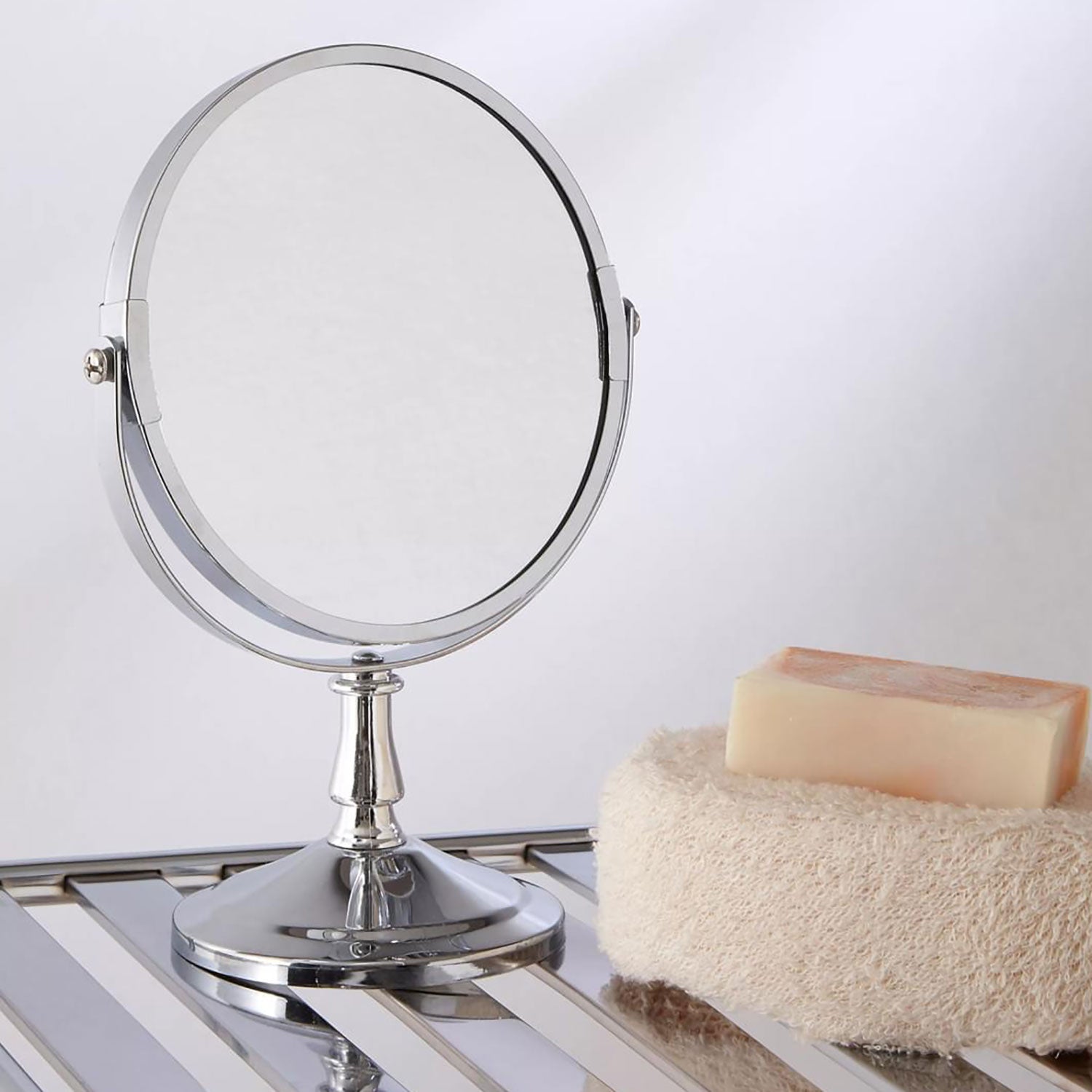It's important when applying make-up or shaving that your mirror can be repositioned to meet your requirements. The sleek chrome mirror stand allows you to tilt and swivel ensuring you achieve the perfect position for those finishing touches. The two sided mirror has true reflection on one side and a magnified option on the other for those finer details.