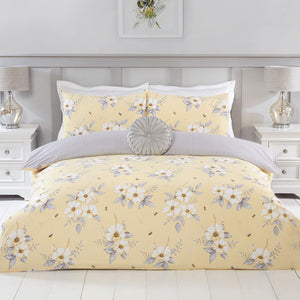 Flower Bee Lemon Yellow Reversible Duvet Set