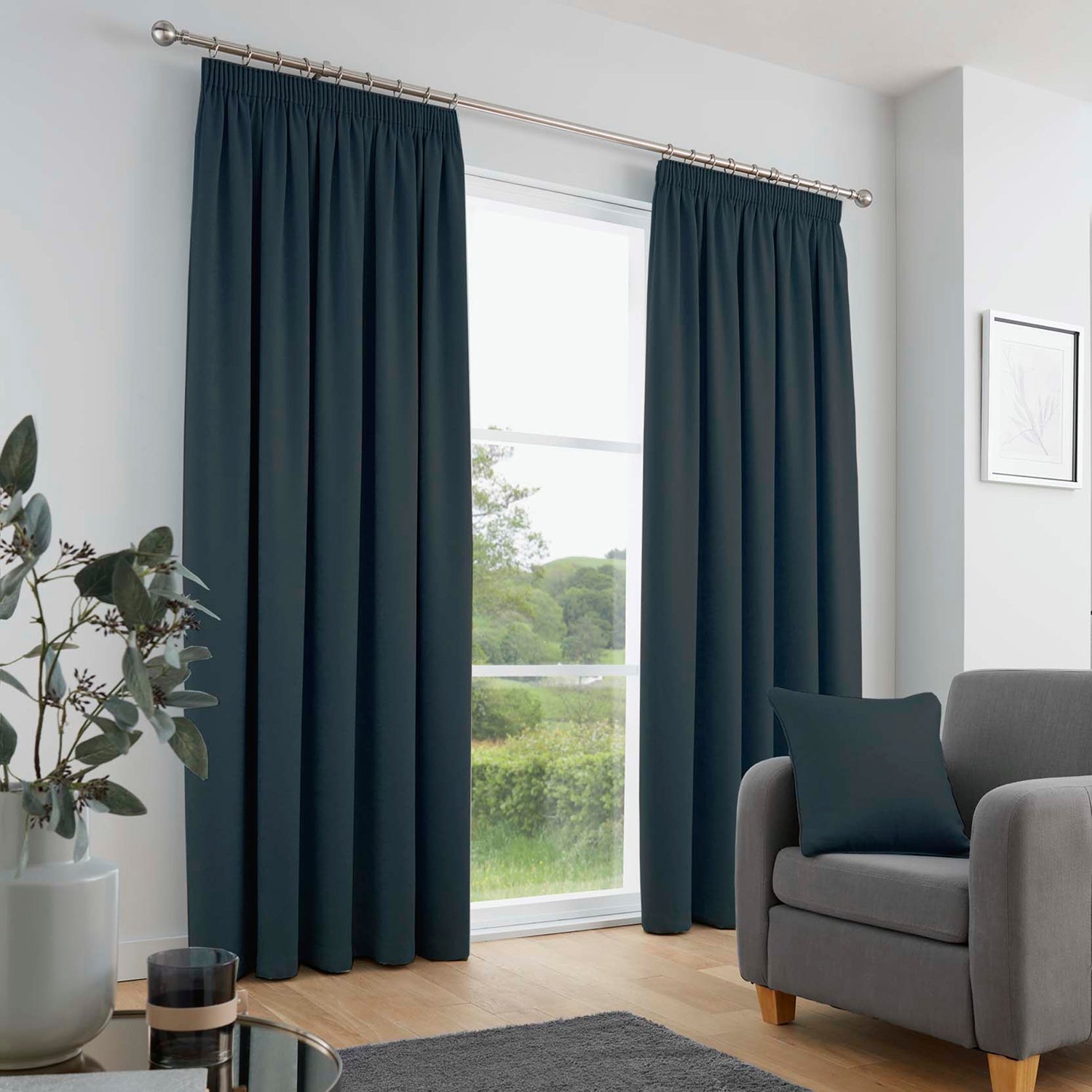 Galaxy Navy Blue Dim Out Pencil Pleat Curtains