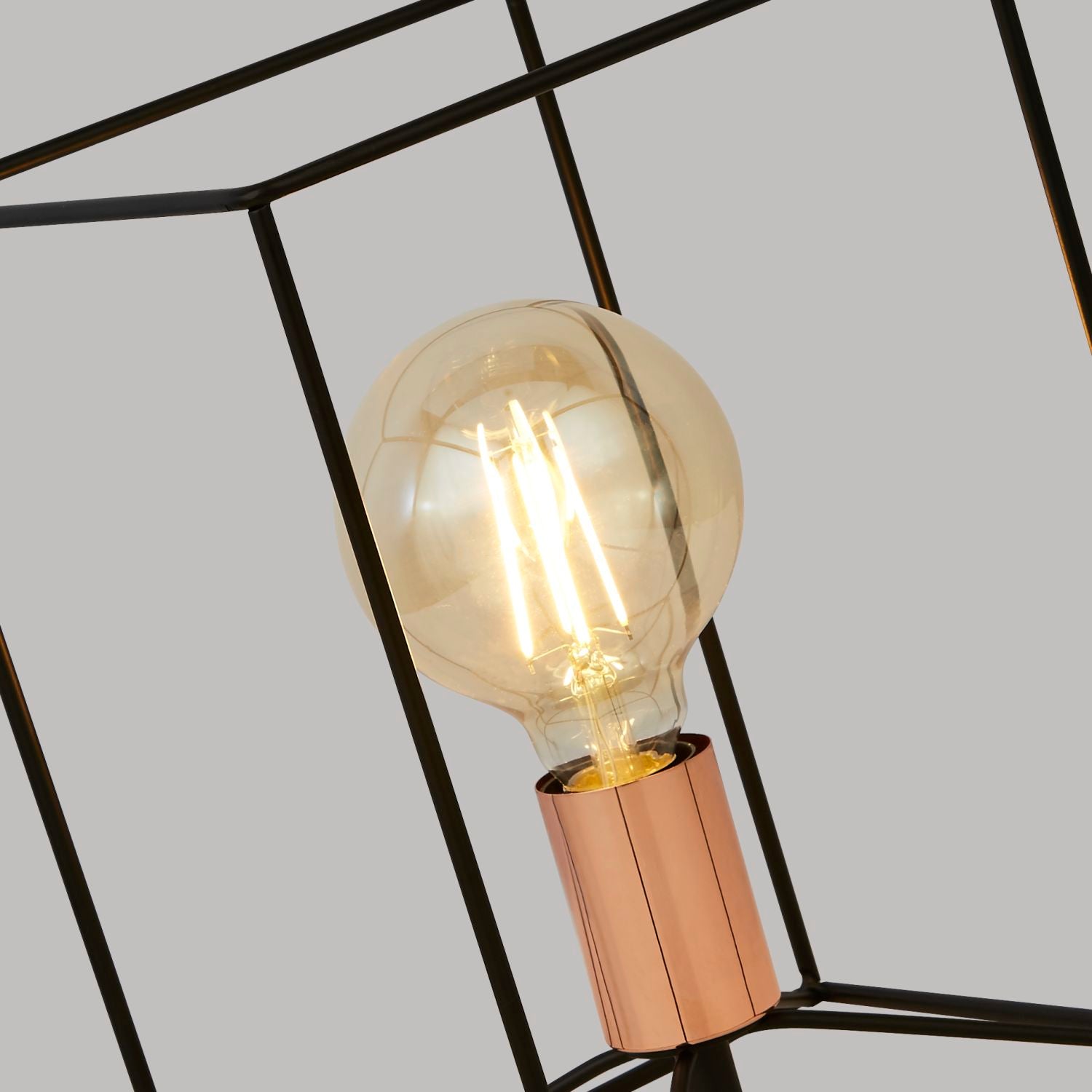 Encased in a simple yet stunning black frame, this table lamp features a copper lamp holder that adds a dynamic feel to any room in a living space.