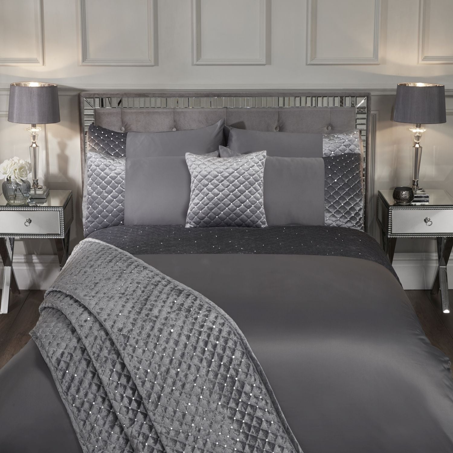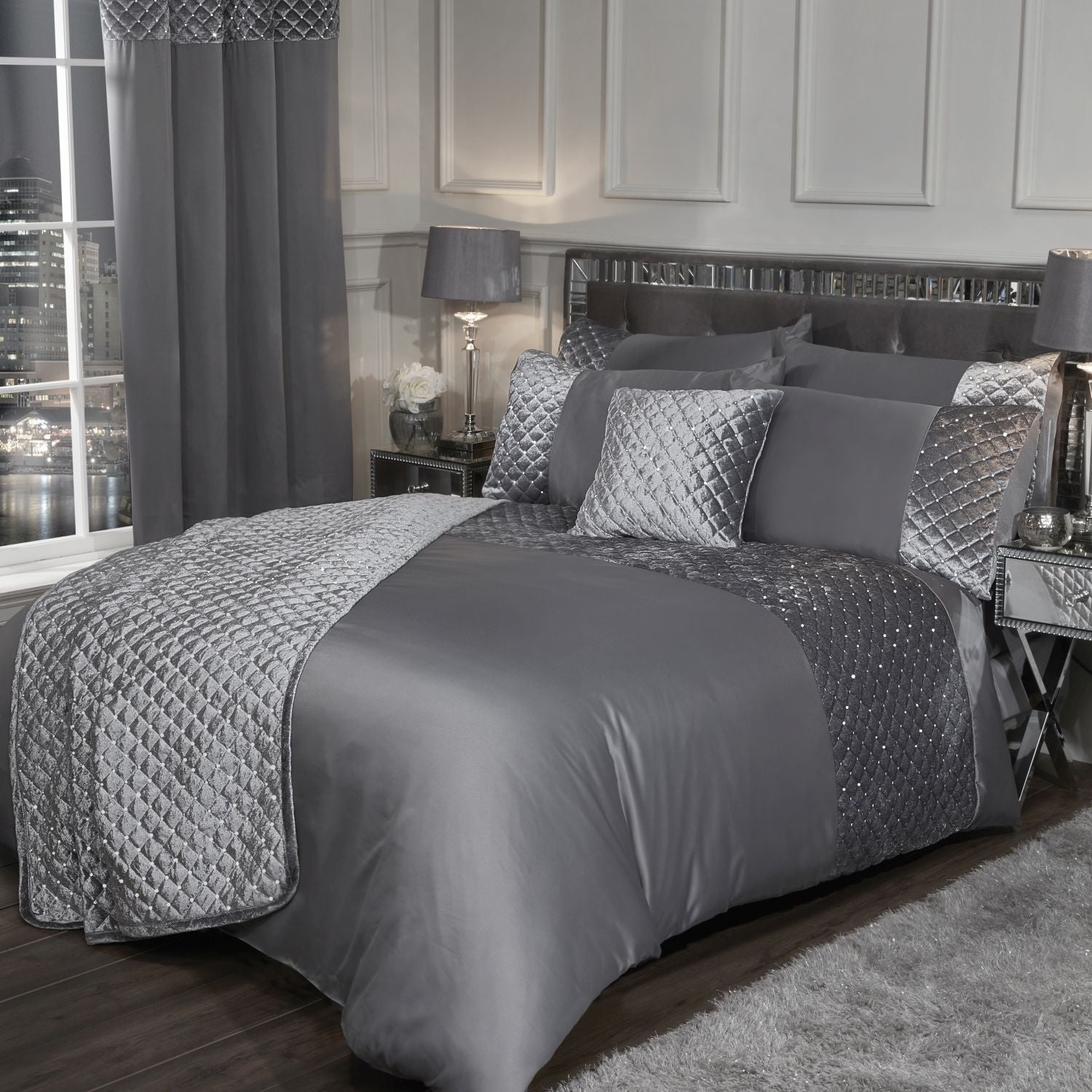 Glamour Silver Quilted Sequin Velvet Duvet Set