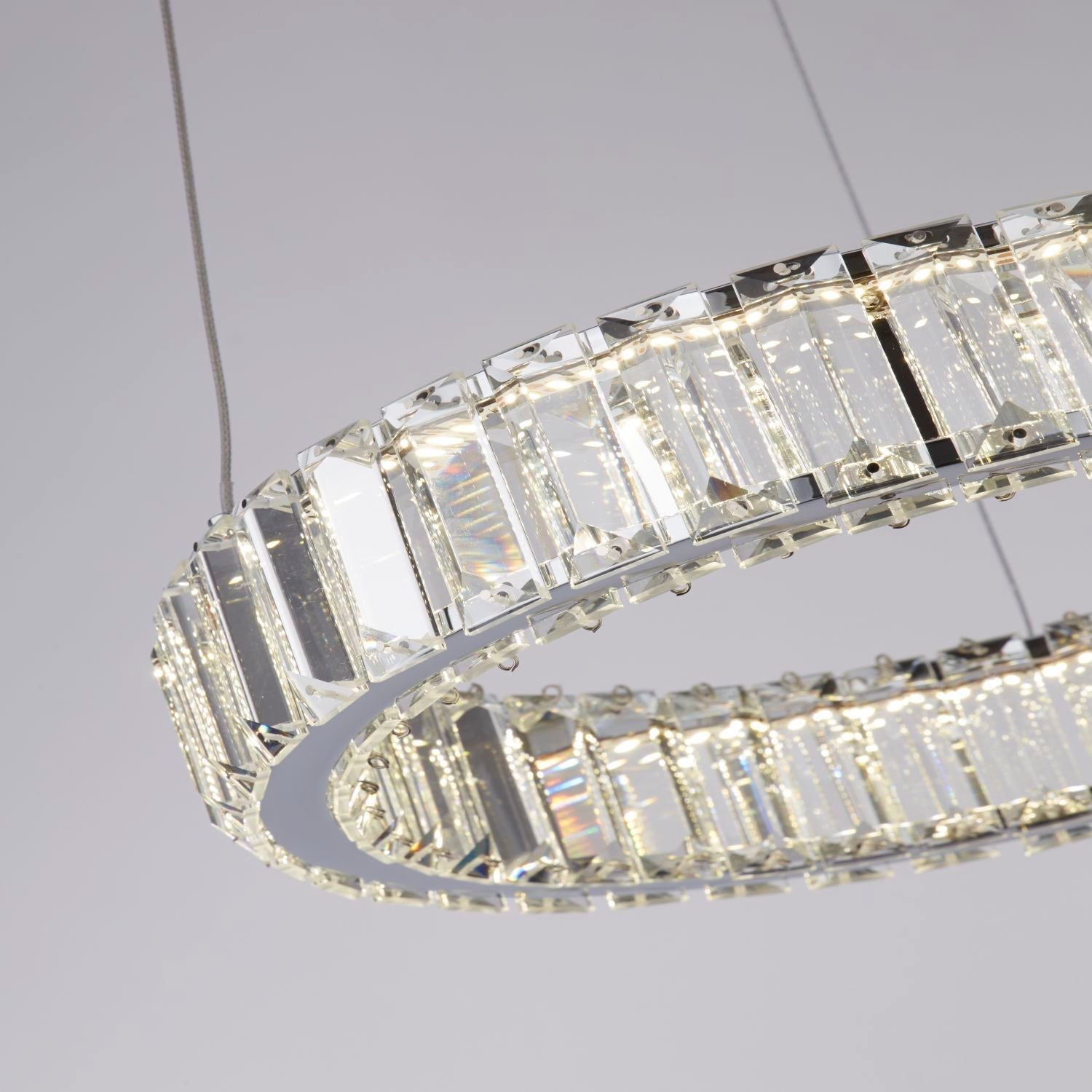 Add some beautiful lighting to your home with this Glass Trim Pendant Ceiling Light.  Perfect for any room, this gorgeous piece features a chrome circular design and an attractive glass trim. Not only is it stylish, but it's also highly energy efficient, so you can save money on electricity costs - what's not to love?