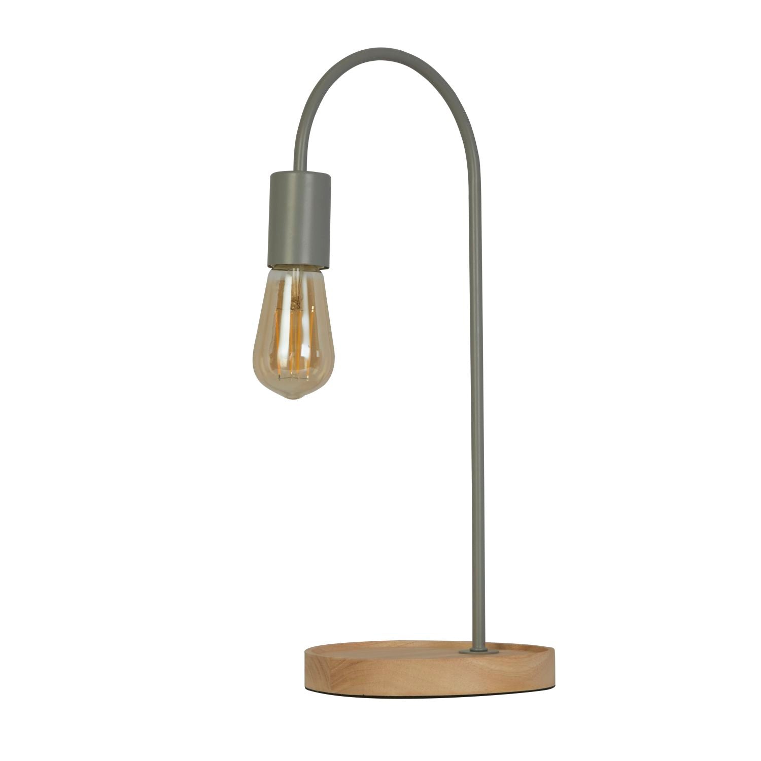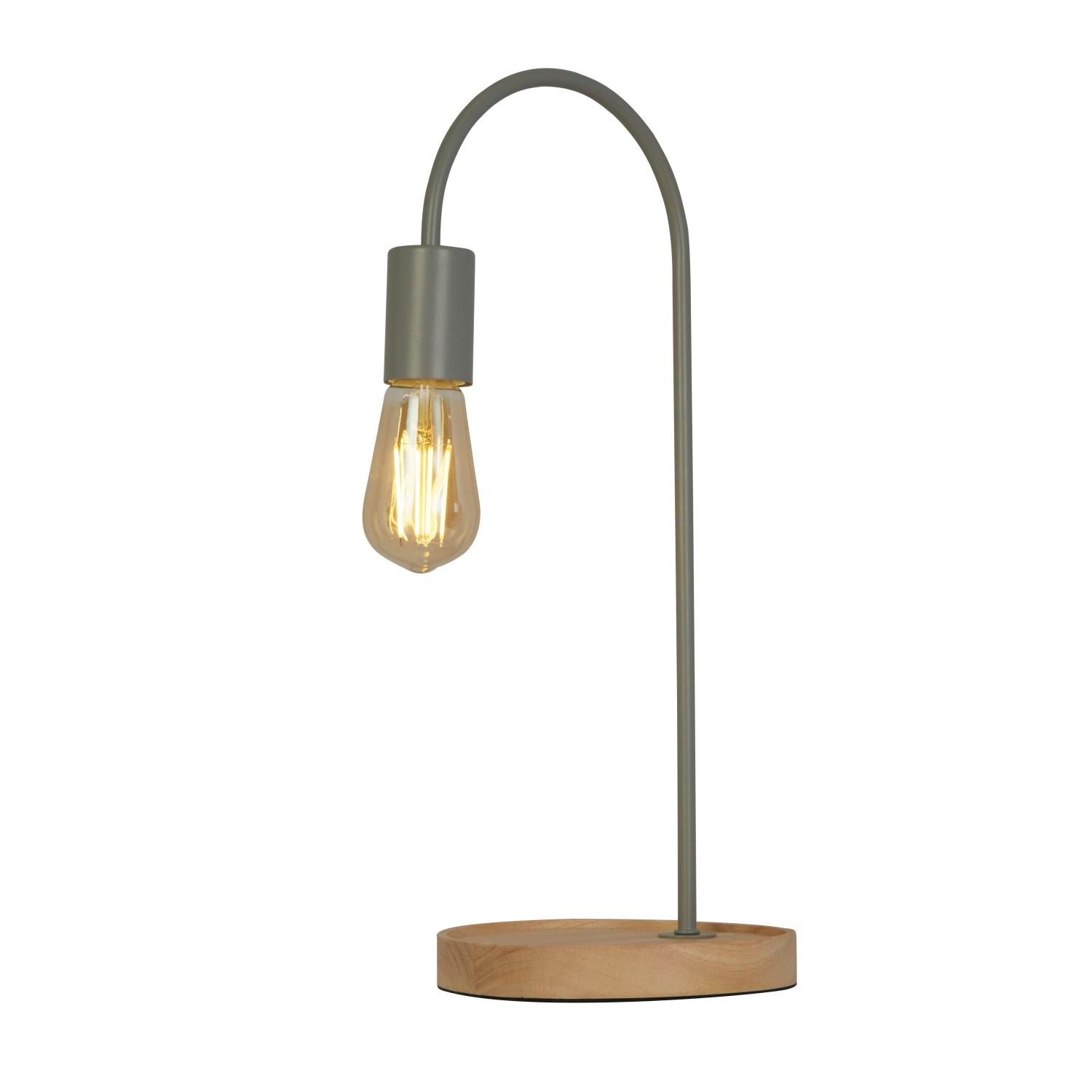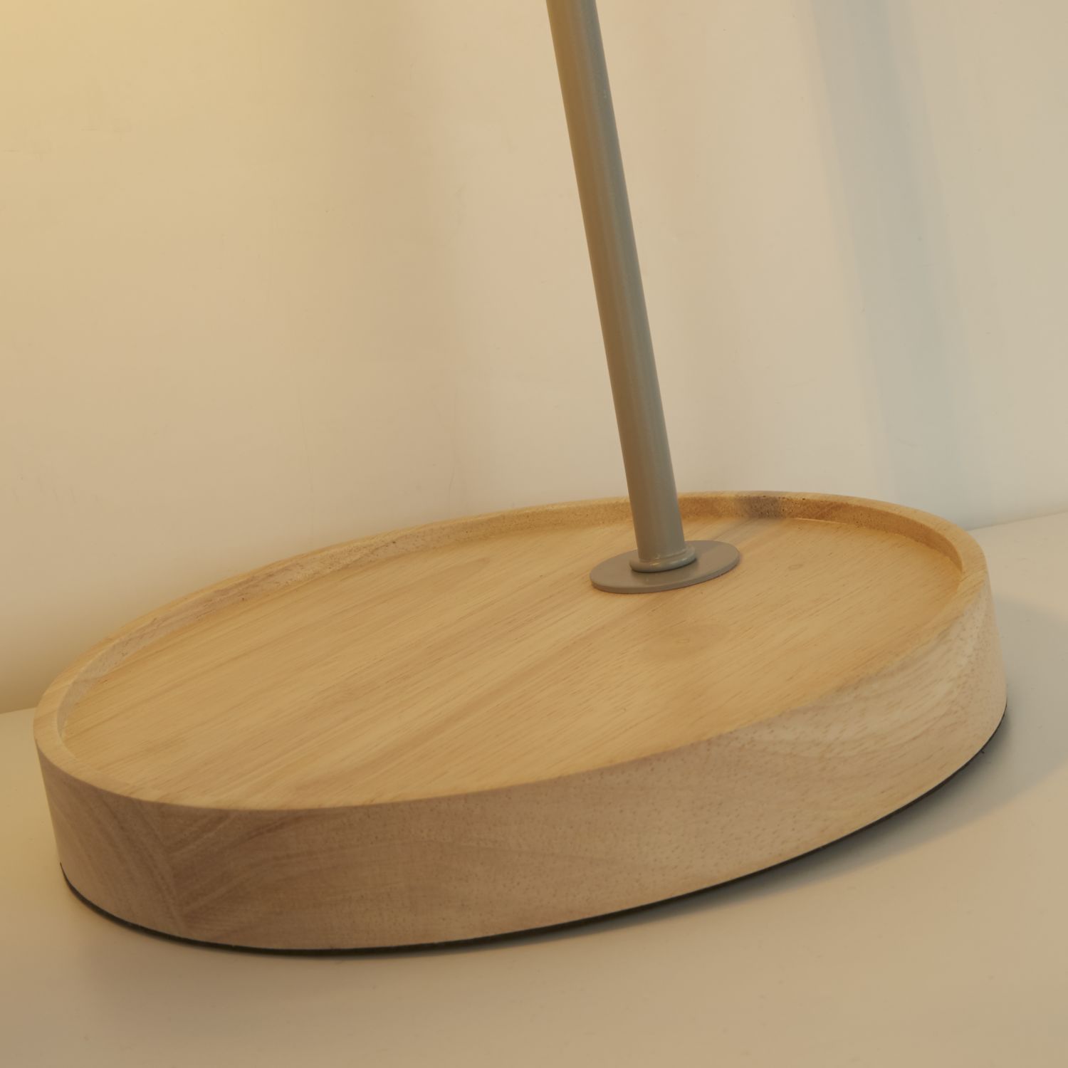 This storage lamp showcases a gracefully curved matt grey stem and a durable rubberwood base, harmonising functionality with its contemporary aesthetics.